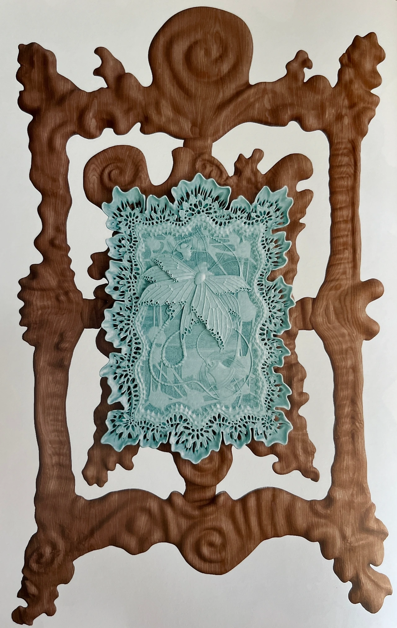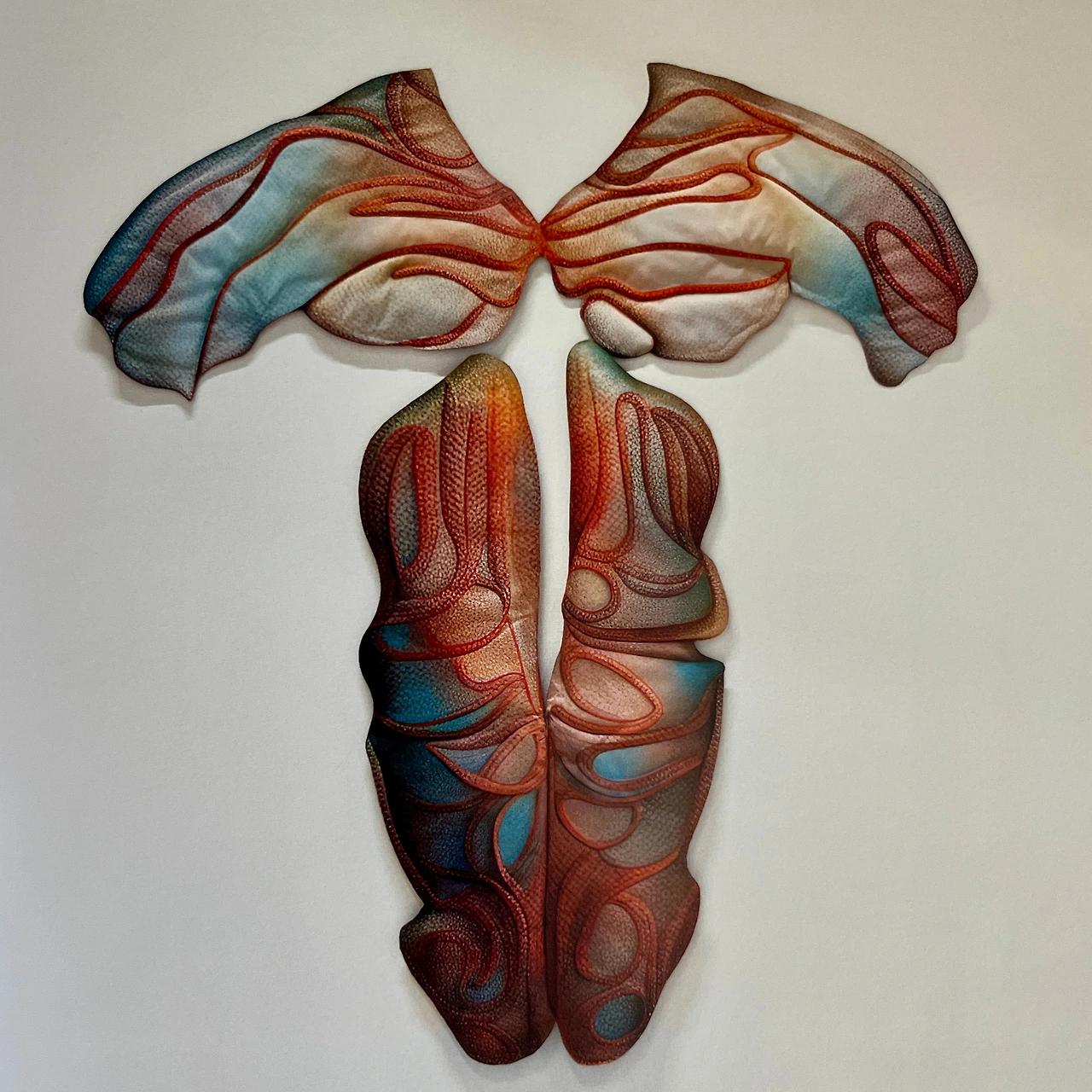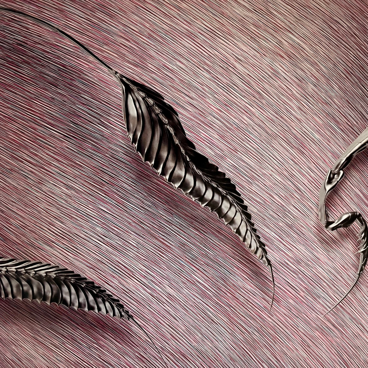뉴욕 기반의 Anastasia Komar(아나스타샤 코마르)는 건축 배경을 가진 다학제 아티스트로, 바이오엔지니어링과 신화를 결합한 조각-페인팅을 구현한다. 그녀의 작품은 유기적·합성적 형태의 공생과 기생 관계를 탐구하며 영감을 받는다. HAUS NOWHERE SHENZHEN에서 Komar는 ‘곤충의 변형’ 시리즈를 통해, 아크릴 페인팅과 3D 프린트 폴리머를 섞어 곤충의 진화 다이어그램을 만들었다. 이 조각은 공간의 ‘변형 지점’에 설치되어, 관람객에게 미래 생태의 불확실성을 상기시켜 준다.