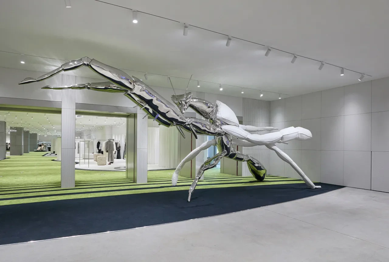 네덜란드 암스테르담 기반의 크리에이티브 듀오로, 그룹명 ‘Freeling Waters’로 활동하고 있다. 1층 계단을 오를 때 마주치는 거대한 벽화(인섹트 킹덤 주제)가 이 듀오의 작품이다. 리테일 공간을 ‘미술관적 경험’으로 승화시키는 맥락에서, Freeling Waters의 벽화는 공간 내 아트웍이 단순 장식이 아닌 스토리텔링의 맥락을 형성하는 중요한 역할을 한다.