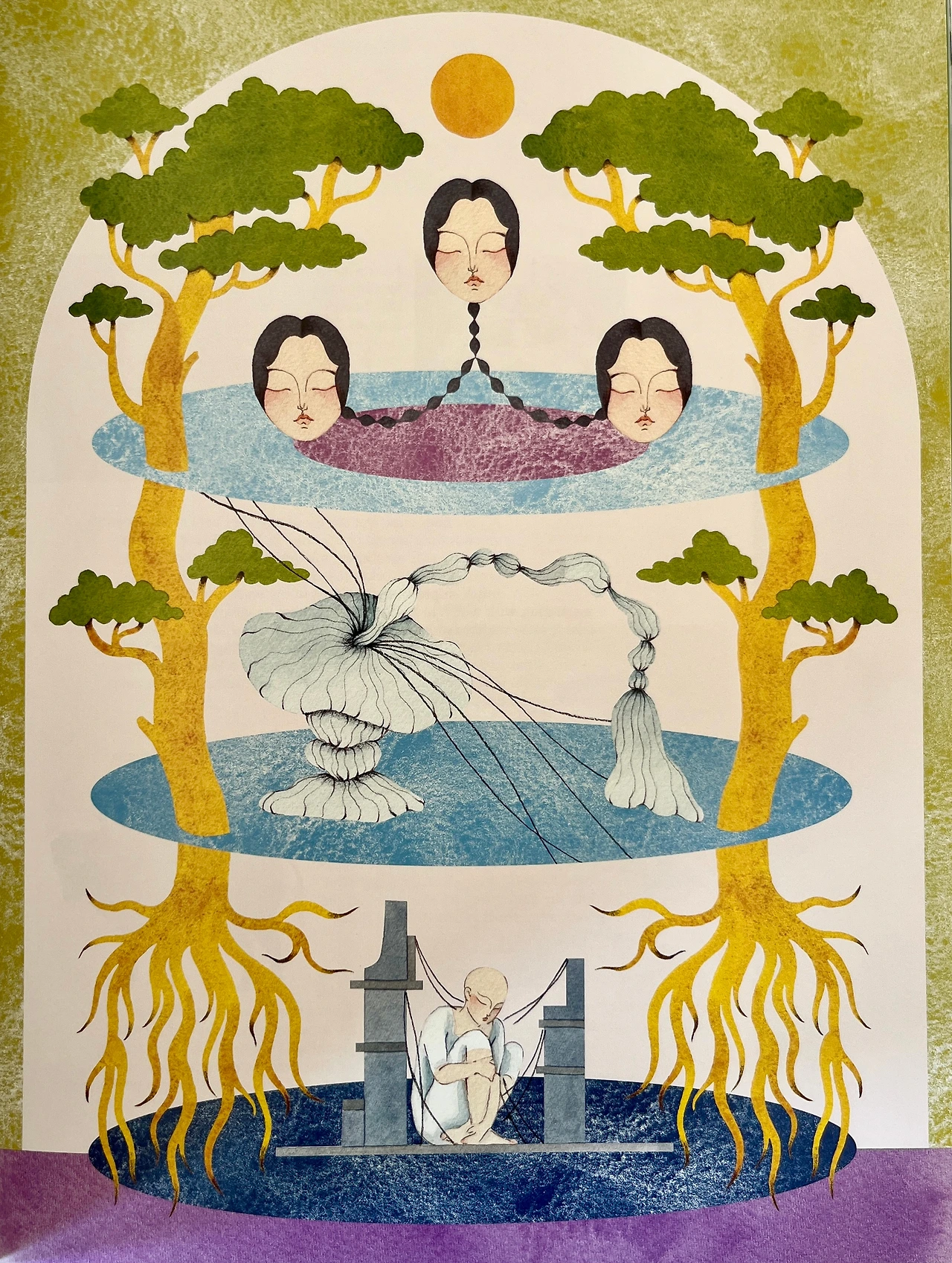 My creative process often begins with fleeting visions I encounter in my everyday life. I capture these moments in sketches, later refining them on paper or canvas. Influenced by the picture books and graphic novels i avidly read in my youth, I structure these inspirations similarly, incorporating characters, symbols, and intentionally designed environments.