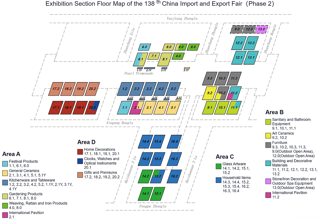이번 138회를 맞이하는 Canton Fair는 1957년부터 시작된 오래된 무역 박람회이다. 총 전시 면적은 155만㎡에 달하며, 올해는 3만 2000여 개 기업이 참가하며 역대 최대 규모를 기록했다. 그중 3600여 개 기업이 처음 참여했다 하니, 기업들의 참여 경쟁이 치열하다. 3개의 Phase로 나뉘어 전시가 진행되는데, 각 Phase에 따라 다른 산업군이 전시를 진행된다. 관심 있는 산업군의 기간에 맞춰 참여일정을 계획하면 된다. 작가의 경우, 건축 및 인테리어에 관심이 많았기에 Phase 2에 참여하였으며, 패션과 Home textile에 관심이 많은 지인은 Phase 3에 방문할 예정이라고 들었다.