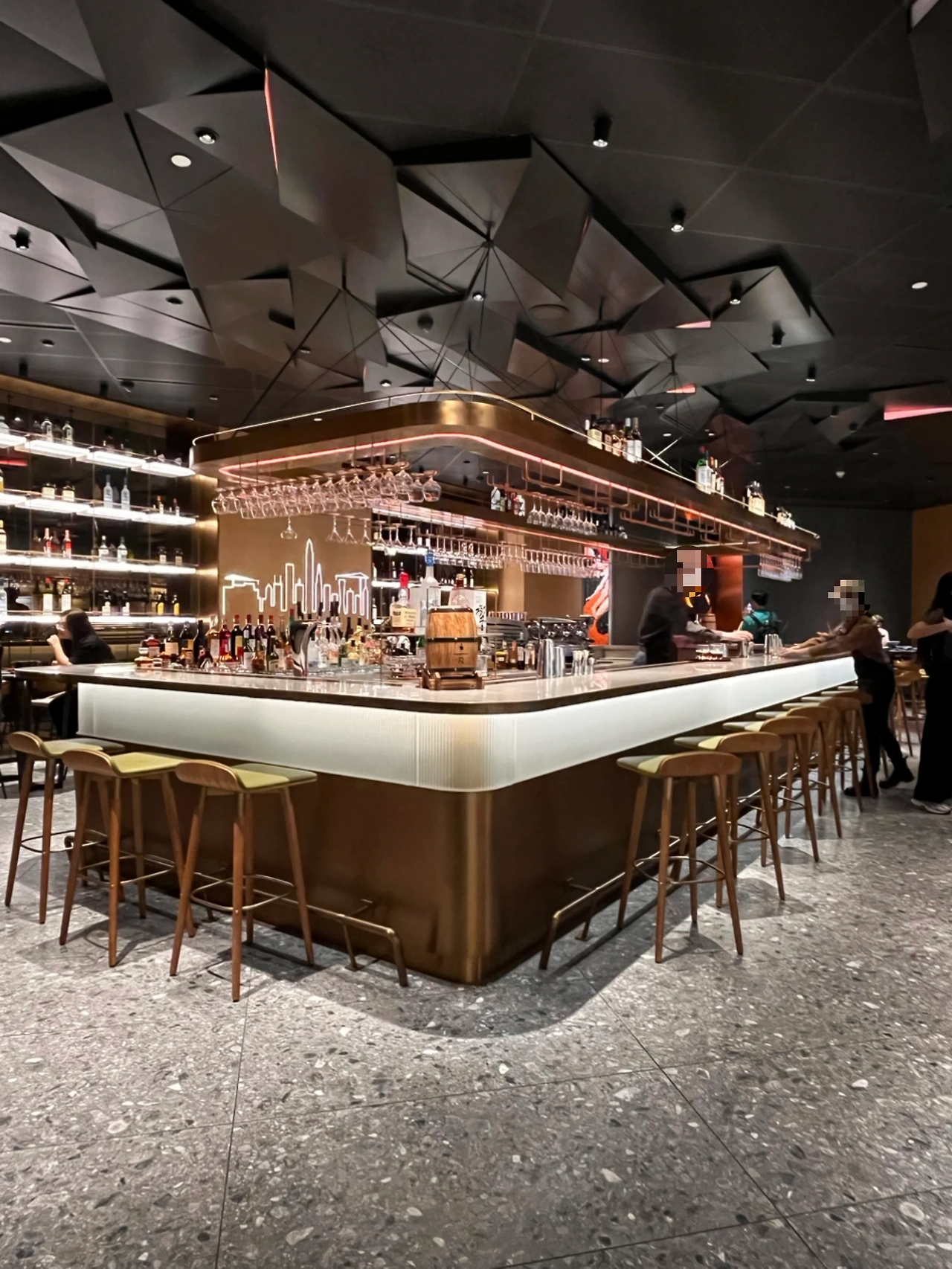 매장 매니저의 안내를 받으며, 매장의 특징들을 자세히 설명받을 수 있었다. 매장이 위치한 곳이 115층 초고층 상업시설의 3층에 위치하다 보니, 주 고객은 직장인이라 한다. 고된 일을 끝내고 집으로 향하는 길에 잠시 들려 칵테일을 한잔 하는 고객, 그리고 조용히 이야기를 나누기 원하는 고객이 주를 이룬다 한다. 중국도 해피아워 문화가 있구나. 매장 디자인은 Metal과 유리재료가 주재료로 사용되어 도시적 세련된 모습이며, 특이한 아트워크가 나의 눈을 사로잡는다. 매니저의 설명에 따르면, 아티스트가 자판기판을 재활용하여 만들었는데 그 이유는 쉔젠이 중국 내 IT가 가장 발달한 곳으로 이를 은유적으로 나타내고 싶었다고 한다. 자판기판을 재활용하는 아이디어는 무척이나 신선했고, IT 도시와도 잘 어울린다고 생각했다.