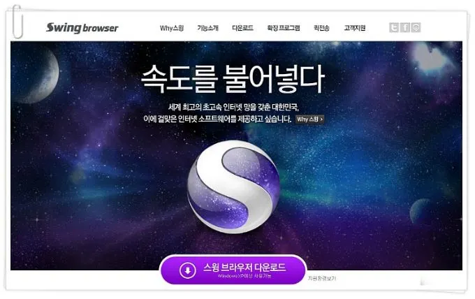 스윙 브라우저 역시 PC, 모바일 모두 지원한다. 스윙은 올해 출시 3년이 되었고 무려 2천만 명이 다운로드했다. 하지만 국내 곳곳에 자리한 인터넷 익스플로러의 벽은 너무나도 높았다. 스윙 브라우저의 점유율은 올해 6월 기준으로 약 1.2%다. 어쩌면 당연한 결과일 수도 있겠다.