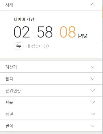 이와 더불어 우측에 배치된 웨일의 사이드바를 보면 생활에 필요한 계산기나 달력, 단위 변환이 있고 디폴트 값으로 시계가 달려있다.