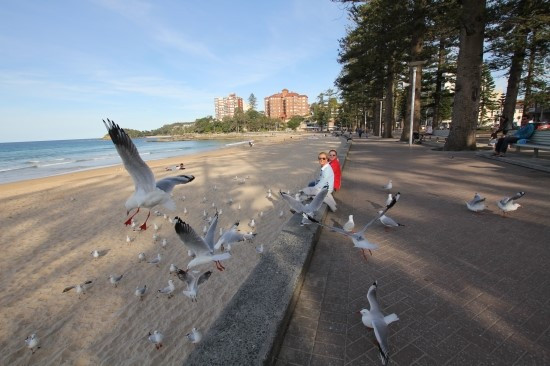 맨리 비치는 약 1~2km쯤 된 듯했다. 오른편에는 상점들과 레스토랑들이 즐비했고 왼편으로는 서퍼들과 여행객들 그리고 어린아이들이 보였다.