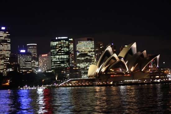 저 멀리 시드니 시내의 야경이 우리의 페리를 기다리고 있었다.