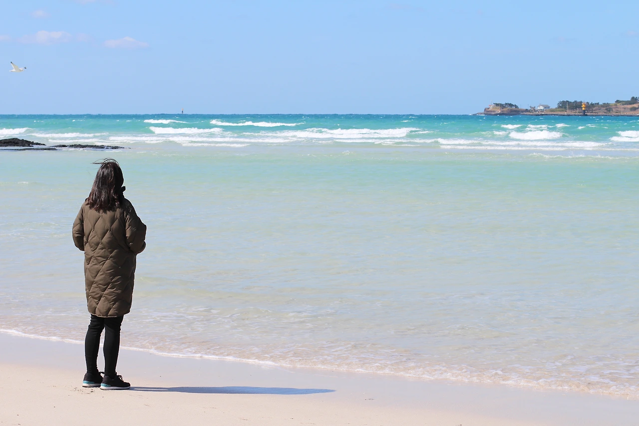 변함없이 맑은 빛깔의 협재해변이 따사로운 햇살과 맞부딪혀 놀라운 모습을 선보였다. 여전히 변함없는 이 곳. 티 없이 밝고 선명하며 아름답다.