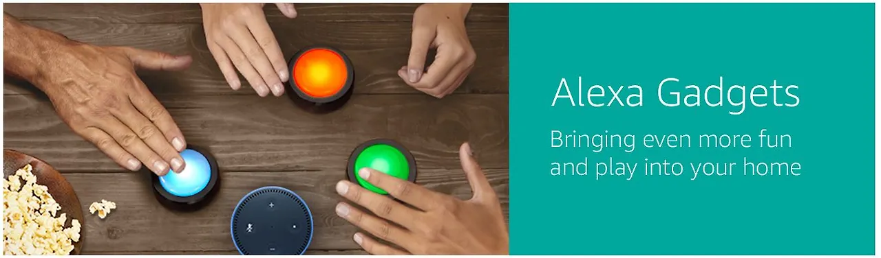 에코 버튼은 말 그대로 게임 실행 능력이 부여된 '버튼'이다. 스피커 제품군이 아니라 알렉사 가제트 즉 부속제품이다. 뭐랄까. 퀴즈 쇼와 같은 프로그램에서 퀴즈에 참가한 사람이 재빨리 누르는 버튼이라고 생각하면 이해가 빠를 것이다. 작고 납작하며 원형으로 생긴 이 제품은 조명이 들어가 있어 여러 사람들끼리 알렉사와 호환되는 게임에서 사용하는 것으로 알려져있다. 제품은 한쌍에 20달러.