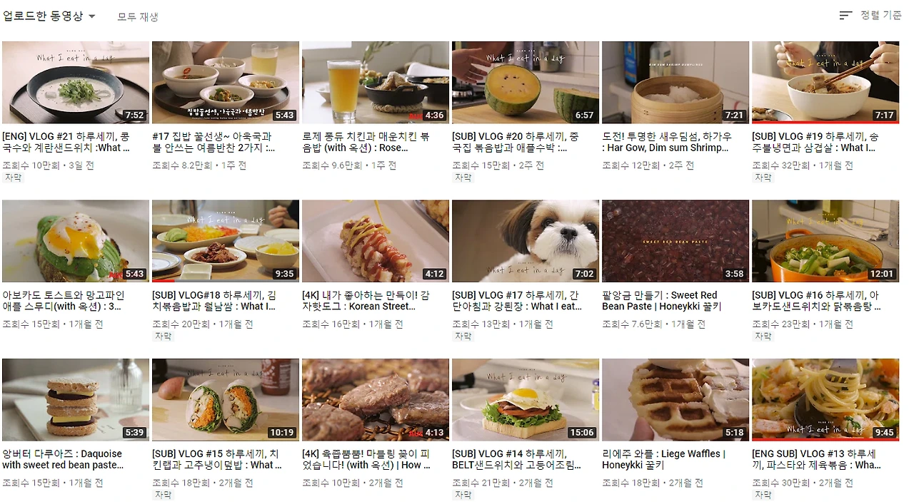 한국음식부터 디저트나 영화 속에 등장했던 요리를 만드는 과정부터 완성된 음식까지 영상으로 보여주는 꿀키의 요리 채널은 자막도 특별한 이미지도 없지만 정돈된 느낌이 매력포인트다.