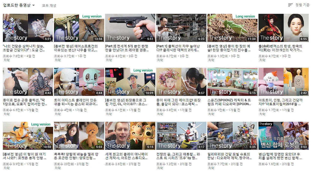 더스토리(TheStory)는 '덕후 채널'의 한 종류라 할 수 있다. 썸네일만 봐도 어떤 영상을 보여줄지 대충 감이 오는데 운영 초반과 달리 점차 '덕후 이야기'로 정체성을 이어갔다.