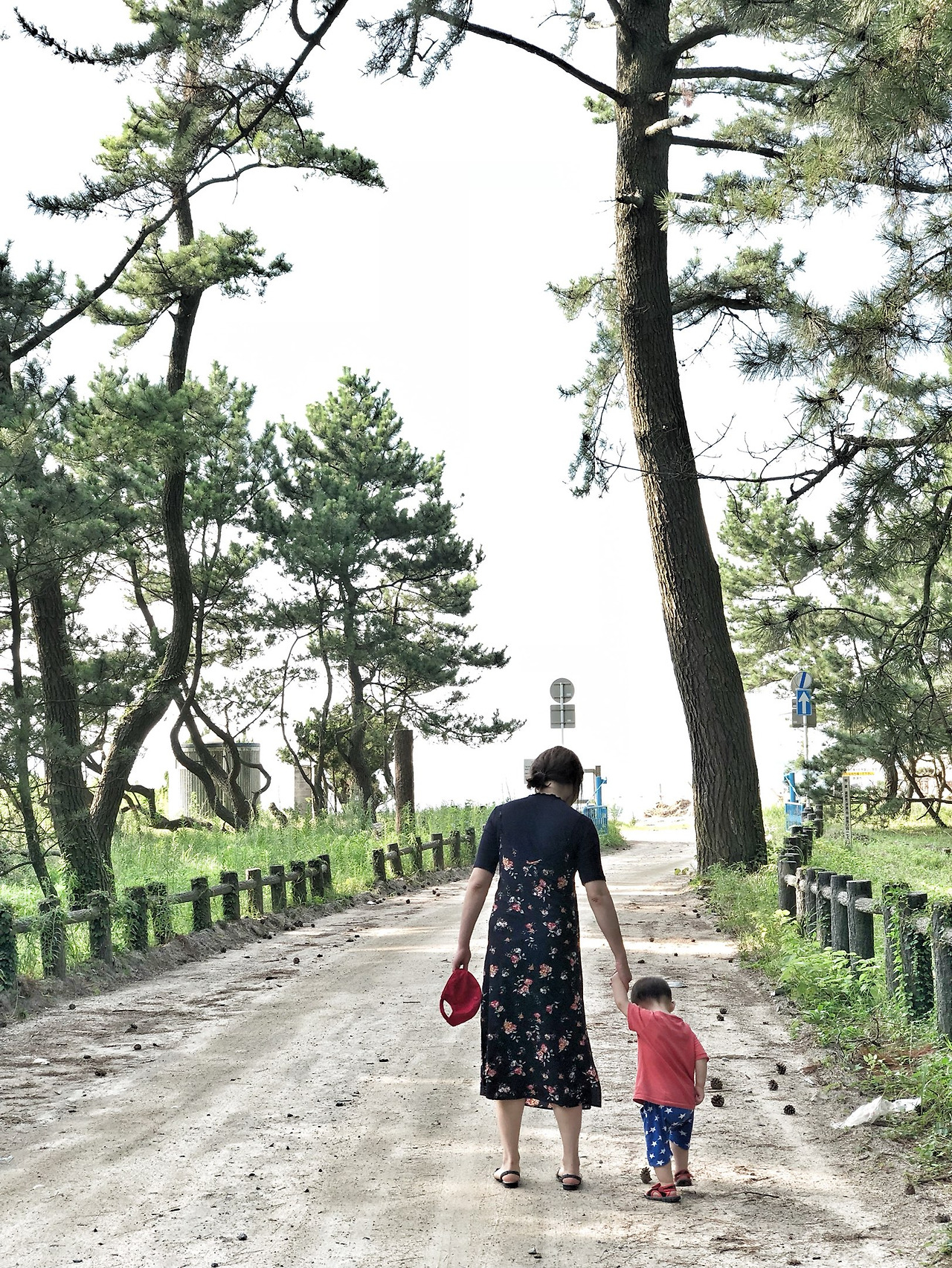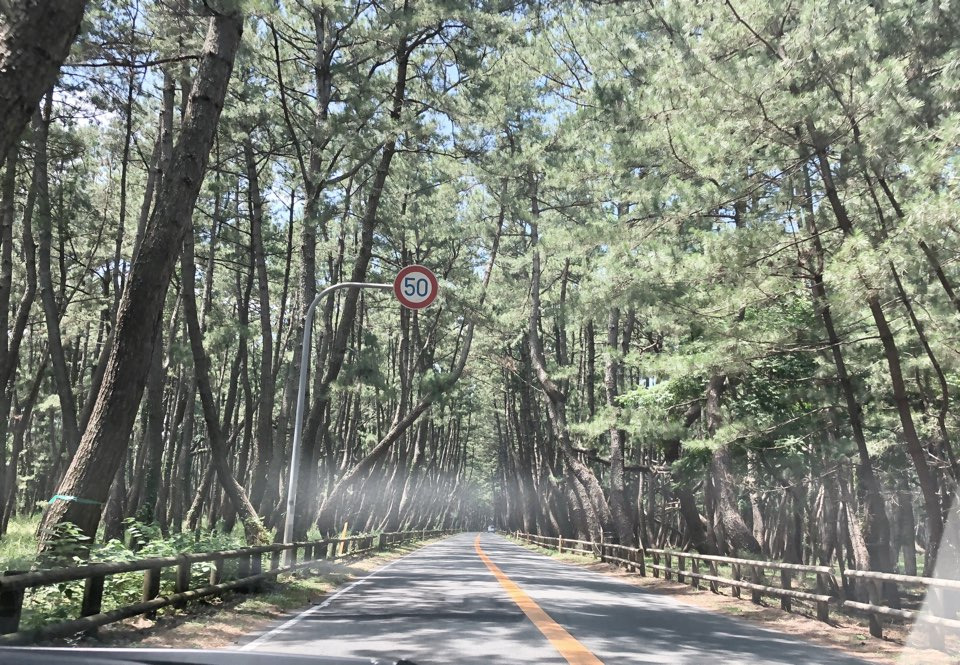 아스팔트가 아닌 흙길 위에서 눈을 감고 서본다. 바다 저 멀리서 불어오는 바람이 소나무 사이를 뚫고 귓가를 때릴 때면 입가에 왠지 모를 미소가 번진다. 등에 흐르던 땀이 그 바람에 씻겨나가는 느낌마저 든다. 작렬하는 태양의 열기가 얇고 뾰족한, 그 수를 셀 수 없을 만큼의 솔잎들이 힘겹게 방패막이를 하고 있으니 지금 이 시간의 방풍림은 편안한 그늘막이 되어준다.