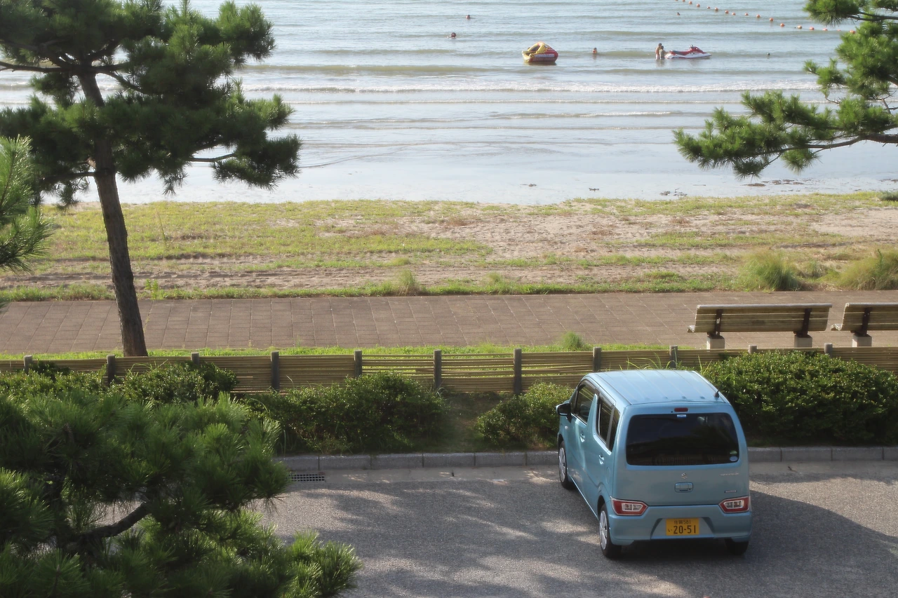 숙소 방에 들어가 창을 여니 언제나 그렇듯 파란색의 바다와 늘 푸른 소나무가 분위기를 자아냈다. 처음으로 와본 료칸의 분위기는 TV나 영화 등 미디어에서 접한 그것과 크게 다르지 않았다. 오래된듯한 목조 건물에 낡은 에어컨, 태풍이라도 온다면 금방 날아가버릴 듯한 야리야리한 창문이 엔틱하고 고즈넉했다. 좁은 욕조와 화장실은 언제나 그렇듯 아담했다.