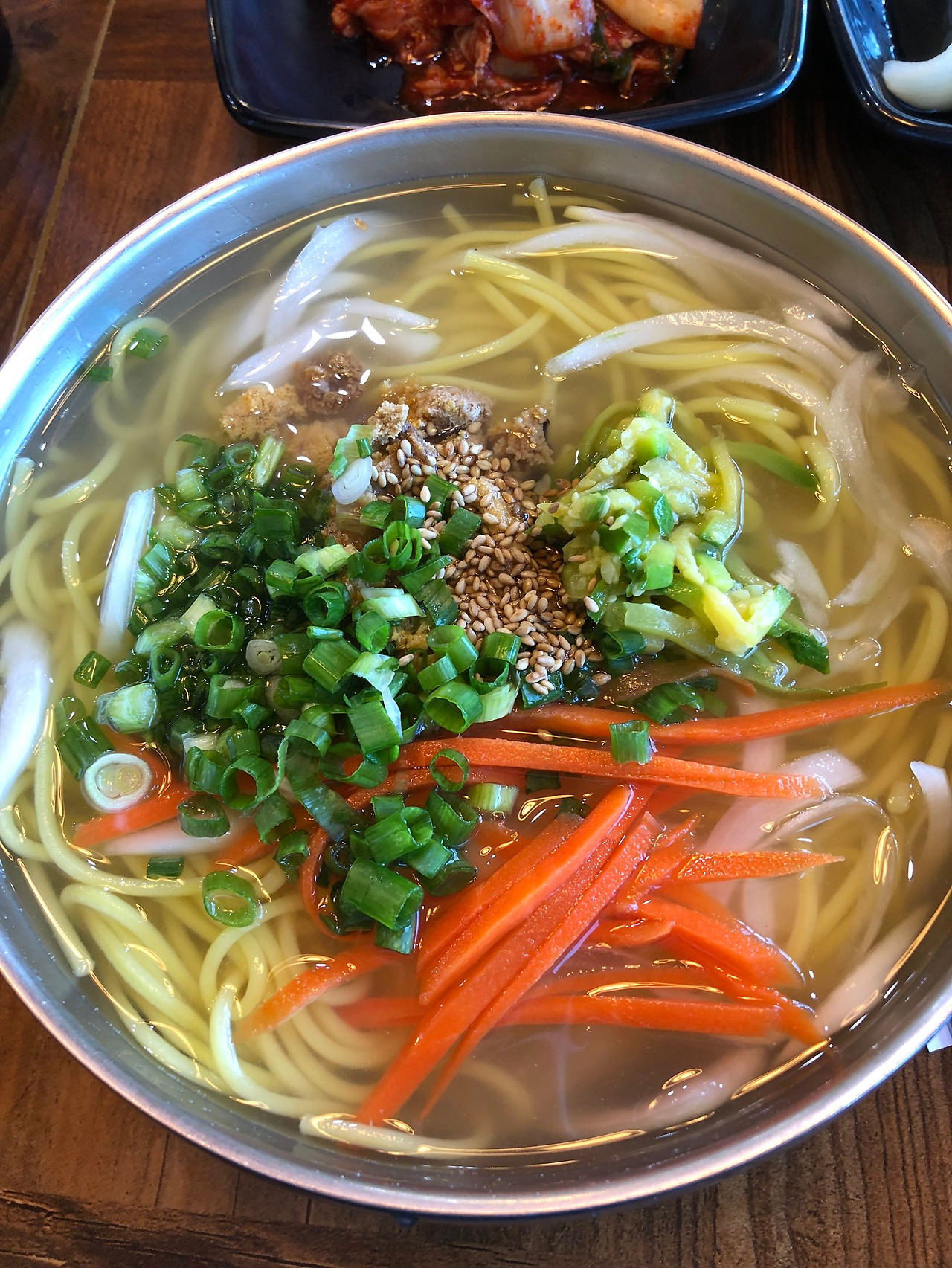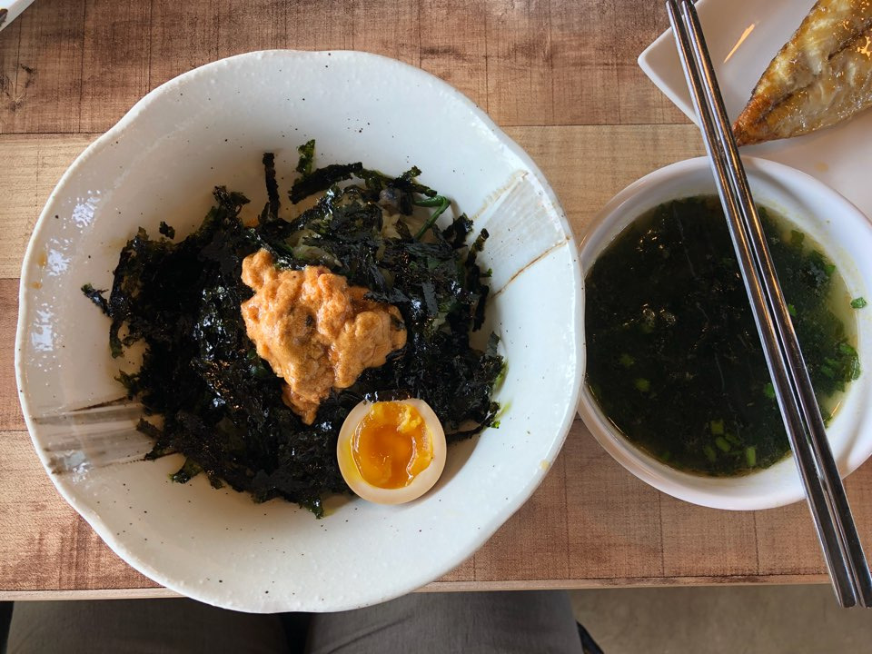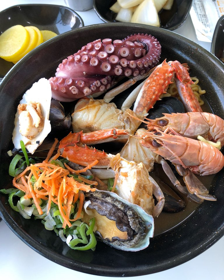 숙소 구석구석 돌아다니며 아기 새처럼 밥을 받아먹었던 아이와 달리 우린 배가 고팠다. 제주에서 흔히 볼 수 있는 아주 지극히 평범한 해물라면을 선택했다. 딱새우와 전복, 게, 문어가 가득 들어가 '푸짐하다'는 말이 절로 나왔다. 아이에게도 마냥 신기한 비주얼, "이건 문어고, 이건 새우라는거야" 조금이라도 달라고 떼를 써보지만 아기 과자를 손에 쥐어주곤 겨우 달래 본다.