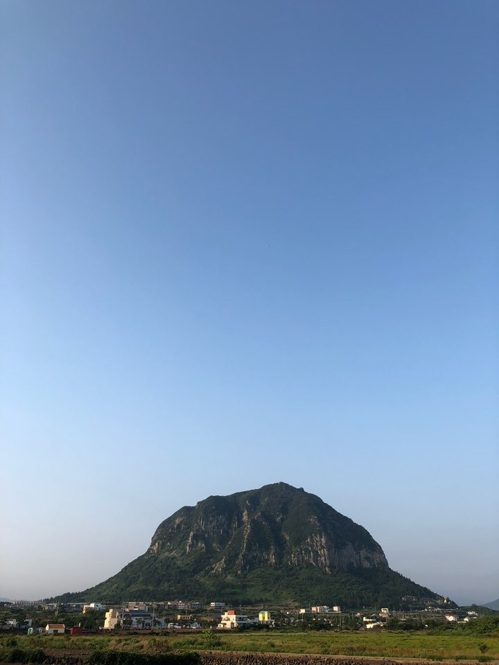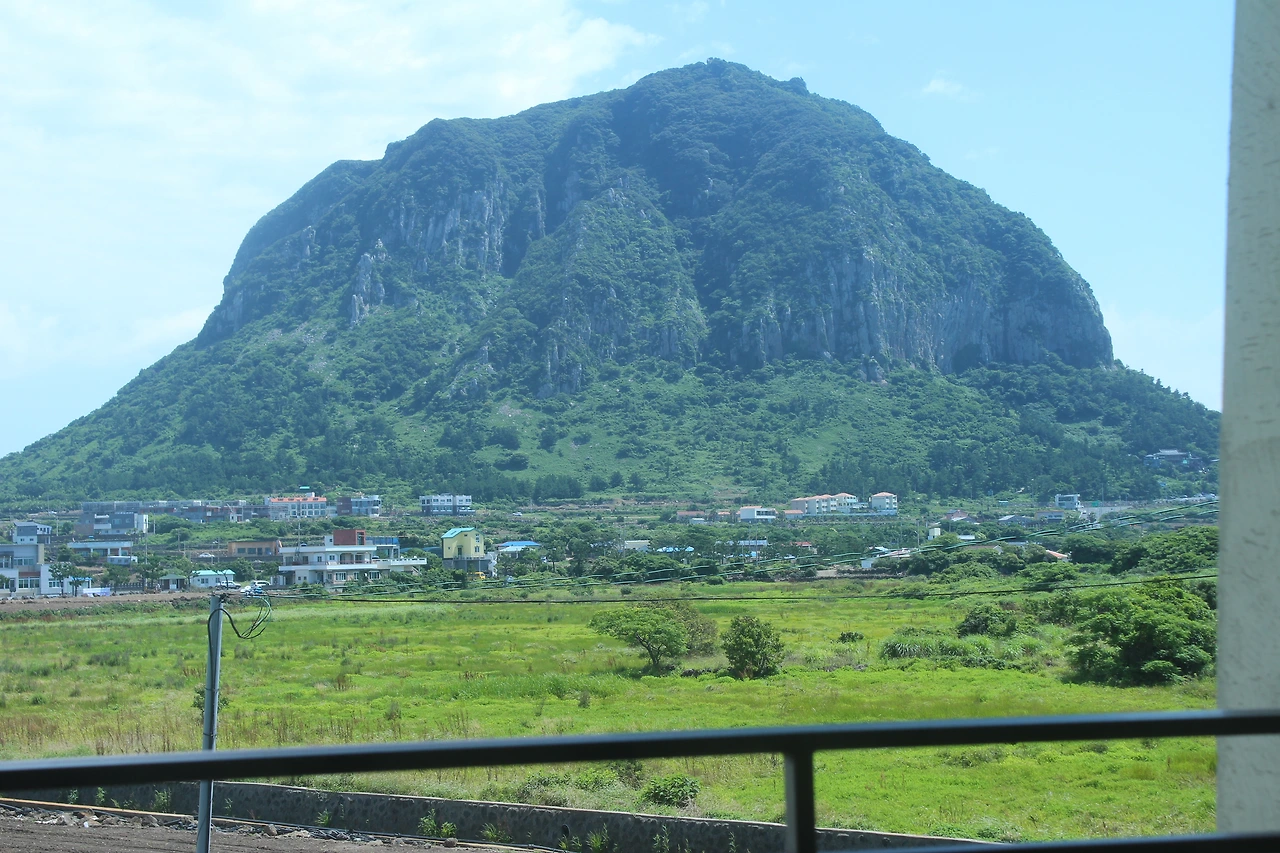아침이 밝았다. 어제와 달리 화창한 햇살이 제주도 전체를 뜨겁게 달구고 있다. 창문을 여니 산방산의 웅장함이 한눈에 들어온다. 마치 액자 속 사진처럼 보인다.