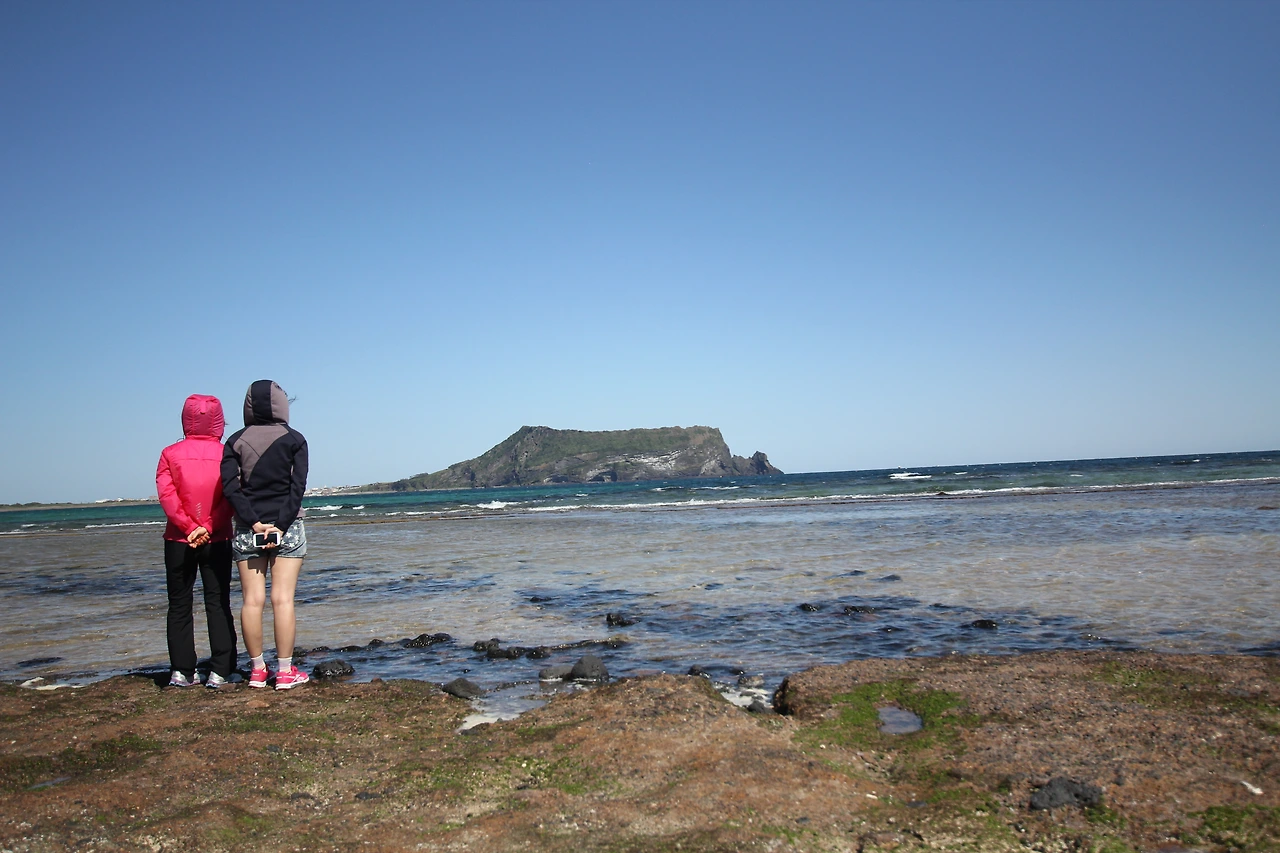 성산일출봉을 오르기 전, 언덕 위에 올랐다. 그 짧은 몇 분간 우리 가족은 조용히 같은 곳을 바라보고 있었다.
