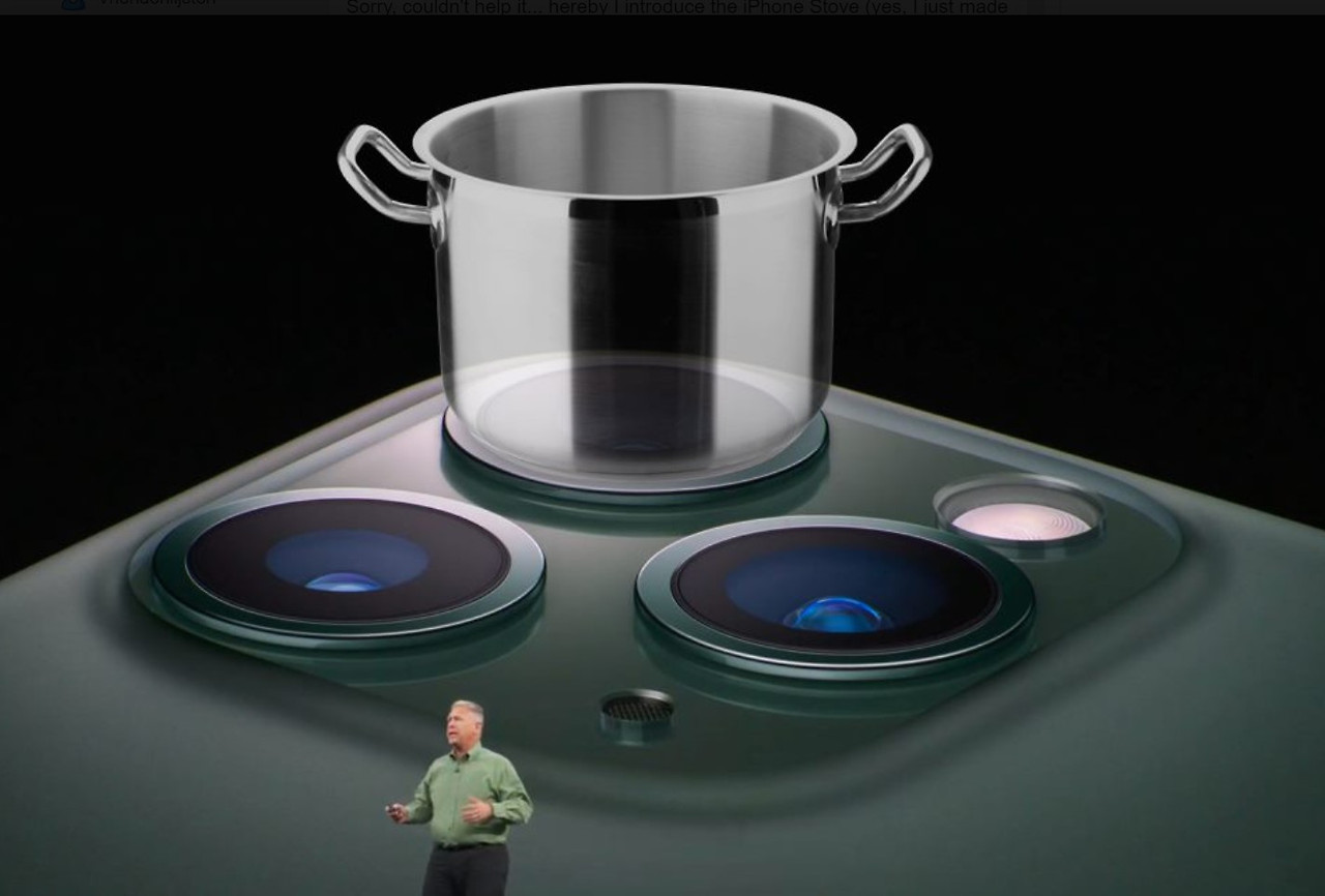 이번에는 '아이폰 11'을 포함해 '아이폰 11 프로', '아이폰 11 프로맥스' 등 3종류를 공개했다. 역시 눈에 띄는 것은 카메라였다. 혹자는 인덕션을 연상시킨다고 했고 또 다른 사람들은 방독면과 외계인의 모습 같다고도 했다. 이는 사실 애플 디자인에 대한 조롱일 수 있다. 그럴 만도 하다. 스티브 잡스(Steve Jobs)가 세상을 떠나고 팀 쿡(Tim Cook) 체제로 들어서자마자 디자인에 대한 호'불호'는 좀처럼 가라앉지 않았다. 애플의 자랑이었던 '홈버튼'을 없앤 것이나 베젤이 상단부를 뒤덮어 탈모를 연상시킨다는 것도 웃음거리였다.