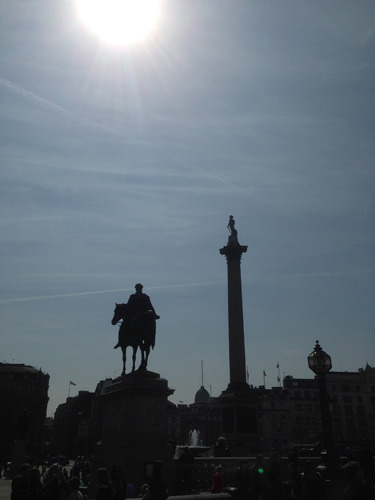 트라팔가 광장은 햇살을 맞으며 일광욕 하기도 좋은 곳 같다. 넬슨 제독 기념비 주변으로는 거대한 사자상이 있고 광장 가운데에서는 분수대에서 물이 솟구친다.