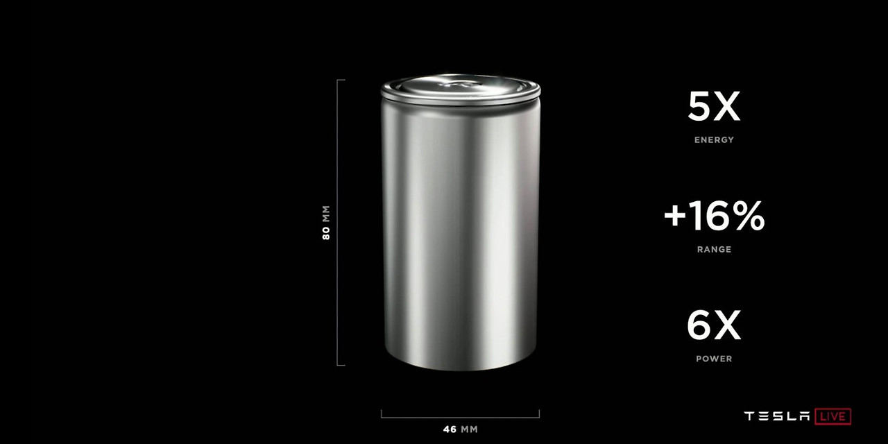 하지만 가격은 절반으로 낮추면서 성능을 고도화한 배터리 셀을 공개했다. '4680'이라 부르는 이 원통형 배터리는 이미지에서도 볼 수 있듯 에너지 용량은 5배, 힘을 내는 파워가 6배, 주행거리 16% 증가라는 성능을 보인다. '4680'이라는 숫자로 명명한 것은 지름(diameter) 46mm, 높이(height) 80mm이기 때문이다. 이제 막 배터리의 성능을 고도화한 것이라 대량생산하는 데까지 시간이 걸릴 것으로 보인다. 더불어 기존 배터리 셀 구매 역시 조금 더 증량한다는 발표도 있었다. 대표적인 배터리 공급 기업은 대한민국의 LG화학, 일본의 파나소닉, 중국의 CATL 등이었다. 이 밖에 다른 기업들이 공급망에 포함될 수 있다고도 했다.
