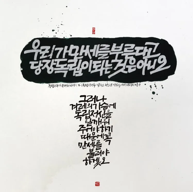 한반도 전역을 태극으로 물들이던 3.1 만세운동과 더불어 당시의 주요 인물이나 사건들을 회화와 서예 작품으로 구성하기도 했었다.