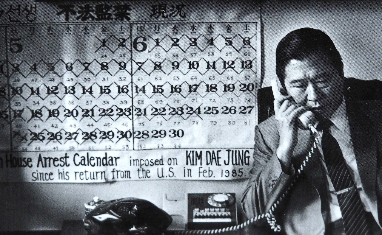 1973년 박정희 정권 시대부터 1987년 전두환 정권까지 '내란 음모 사건'으로 사형을 선고받은 바 있다. 이후 망명생활과 쉰다섯 차례의 가택 연금, 6년의 투옥 생활 등 수많은 위협과 정치적 굴곡의 삶을 보냈다. 이 사진 작품은 미술관 초입에 걸려 눈길을 사로잡는다. 더불어 1985년 가택연금에서 해제되기 전의 당시 모습을 담은 유일한 기록 사진이라고 한다.