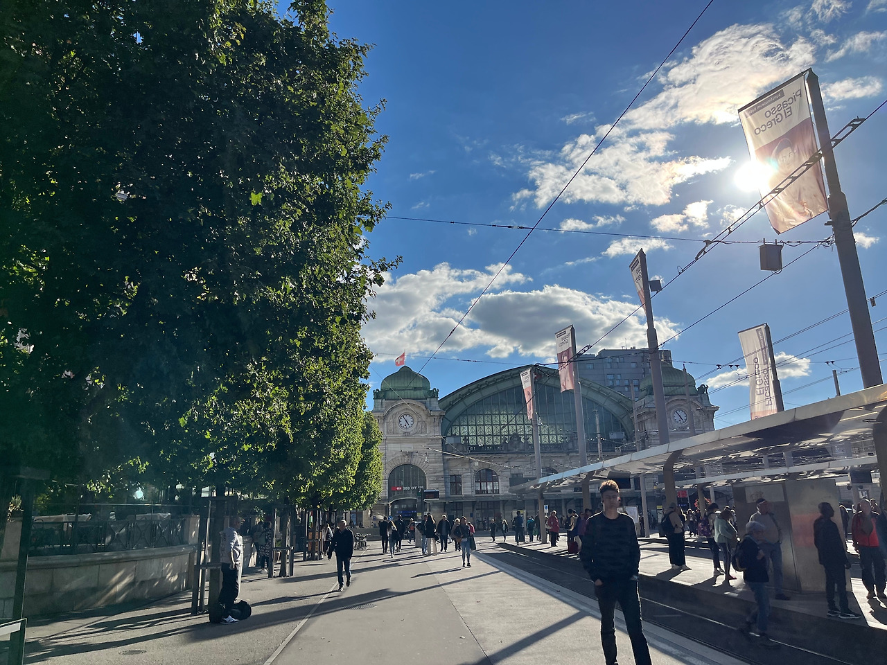 한참 잘 달리던 열차에서 안내 음성이 흘러나왔다. 처음 들었을 때 분명 문제가 생긴 듯했다. 몇 분 뒤 다시 안내가 나왔고 중간에 내려야 한다고 했다. 결국 목적지였던 바젤 SBB역까지는 가지도 못하고 모두가 하차해야 했다. 또다시 무거운 캐리어를 들고 하차한 뒤 다른 기차로 환승했다. 애초에 50분 지연에다가 환승까지 했으니 목적지 도착은 더 늦어진 셈이다. 오후 시간이 되어서야 화창하게 햇살이 내리쬐는 바젤에 도착했다. 프랑크푸르트와는 전혀 다른, 그야말로 눈부시고 푸르른 날의 온기가 기분을 들뜨게 만들었다.
