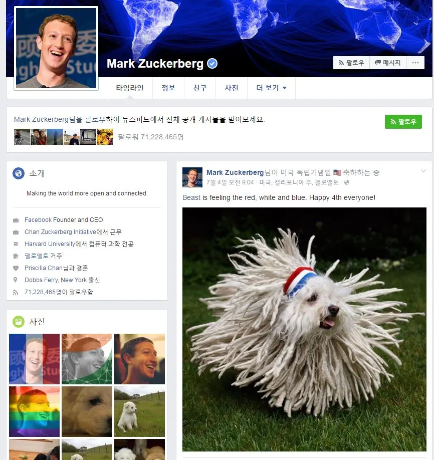 페이스북의 2016년 기준 회원수는 무려 15억 명이다. 1984년생, 이제 30대 초반이 된 마크 주커버그는 어마어마한 부호가 되었다.