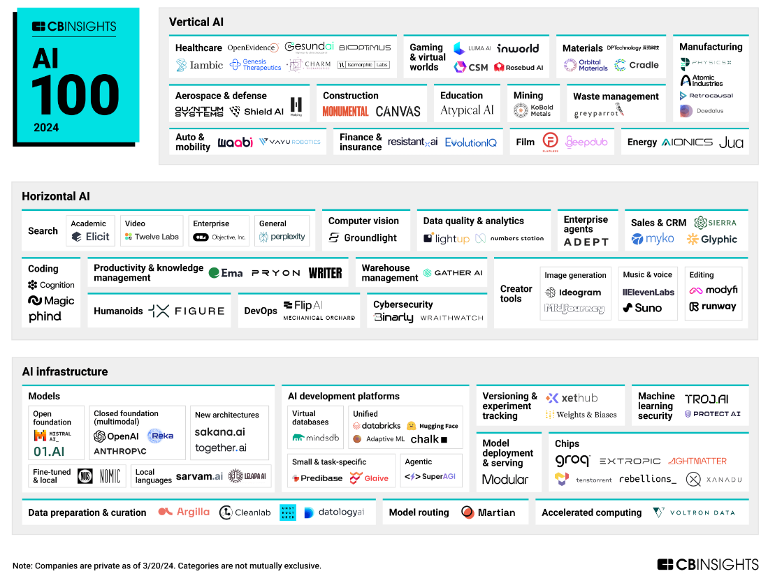 - <AI 100: The most promising artificial intelligence startups of 2024>(2024.4.2), CB insight