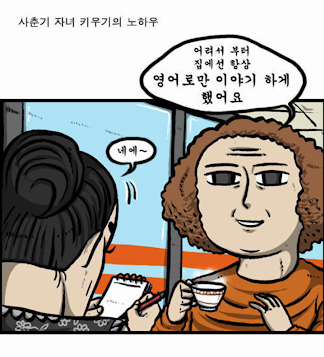 이는 구글링만 잠깐 해봐도 비슷한 것들이 나온다. 이보다 더한 표현도 볼 수 있다. 참 웃프다. 말 그대로 웃기지만 한편으론 씁쓸하다. 우린 대체 무엇 때문에 이렇게 단순한 표현도 어렵게 배우고 있는 것일까? 수능 문제부터 실생활 영어를 모두 경험해보고 나니 더 그렇게 느껴진다. 영어를 가르치는 교수나 선생님, 강사분들이 봤다면, 이런 것도 다 경험이고 짧게 표현할 수 있는 스킬의 발판이 되겠노라 말할 수 있겠지만 이제 막 한글을 뗀 아이들도 초등학교에 들어가자마자 영어를 표현하는 어떤 언어적인 단계를 넘어서 최종 단계라고 할 수 있는 '불'수능에 일찌감치 대비하고 있는 것은 아닌가 하는 생각이 들 정도다. 사실 우리 아이도 영어를 배운다. 단순히 알파벳을 쓰는 수준을 넘어섰다. 어떤 아이는 몇백만 원 하는 영어 유치원에 다닌다. 영어는 학문이기 이전에 쌍방향 커뮤니케이션을 위한 언어다. 자전거 타는 근육과 또 달라서 쓰지 않으면 잊히게 마련이다. 대학 입시를 위해 그렇게나 암기했던 단어들은 죄다 어디에 있는가? 필수 영단어라고 하는 것들의 알파벳이 이리저리 흩어져 저 멀리 묻히고 배웠던 표현도 어느새 다른 것들에 모두 가려진 듯. 결국은 (영어 하는) 습관도 중요하고 (영어를 할 수 있도록 하는) 환경도 매우 중요한 것 같다.