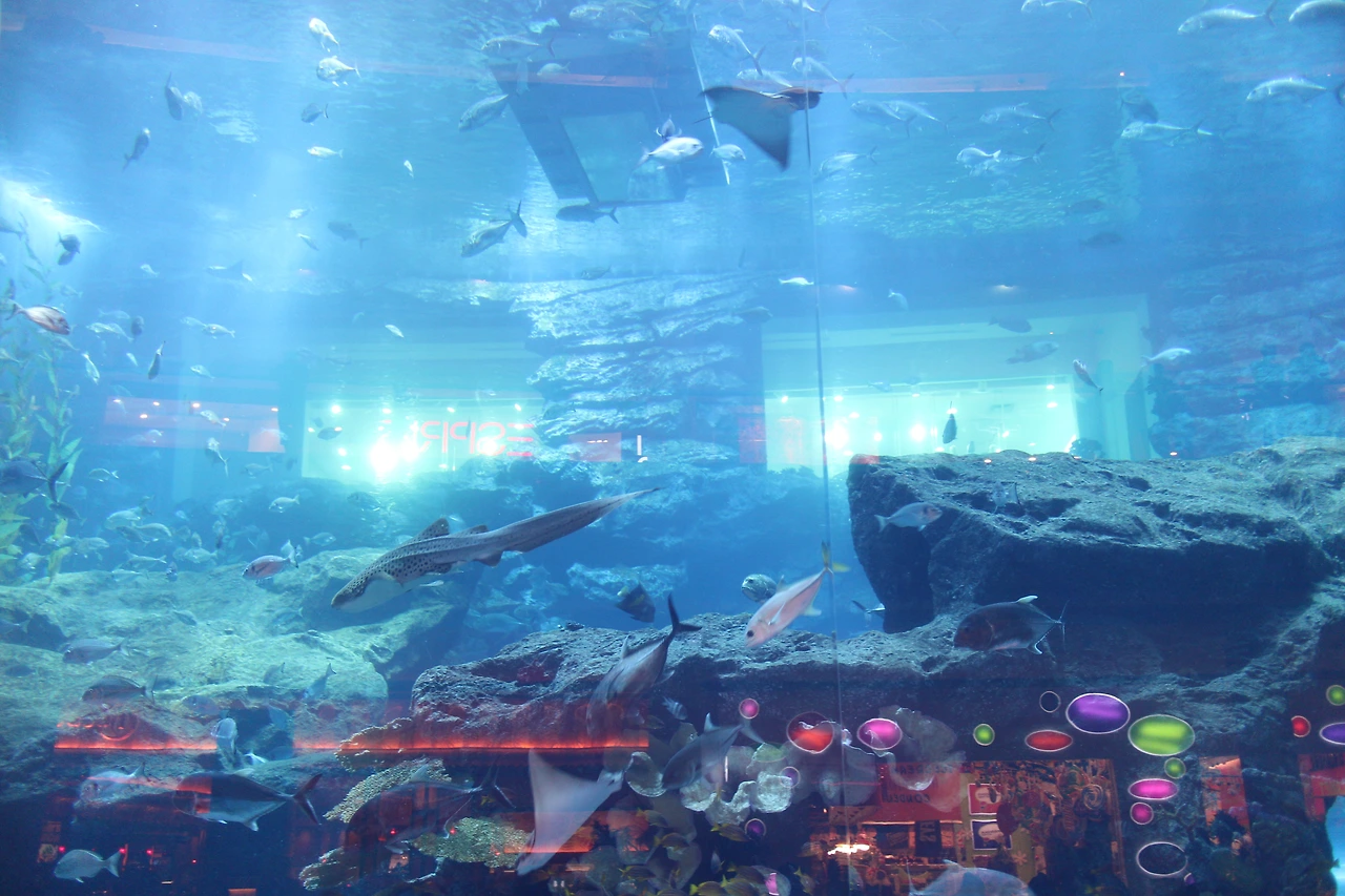 입구에 들어서는 순간 거대한 수족관과 마주하게 된다. 굳이 입장료를 내지 않아도 대형 수조에 담긴 여러 생명체를 바라볼 수 있도록 되어있다.
