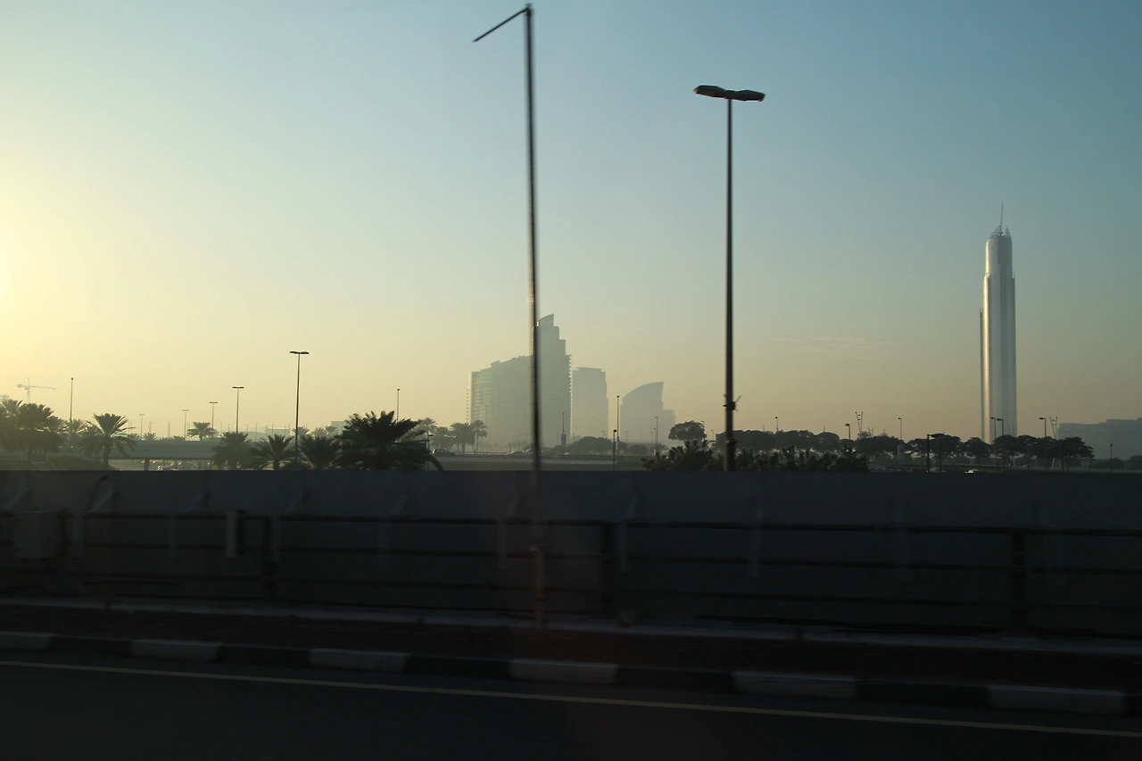 발을 동동 구르는 관광객들과 달리 입국 수속 심사를 담당하는 이 곳의 사람들은 굉장히 여유롭다. 대략 1시간 남짓 지나서야 비로소 두바이 땅을 '공식적으로' 밟게 되었다. 밖으로 나오니 이른 아침을 맞이하는 두바이. 안개가 자욱하게 끼었다. 공항을 조금 벗어났을 뿐인데 멀리 우뚝 솟은 건물들이 하나 둘 보인다.