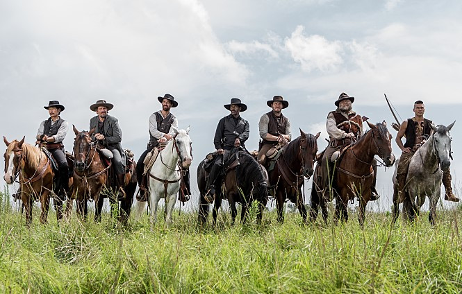 영화 <매그니피센트 7>은 미국 서부의 모습 위로 말을 타고 있는 총잡이들이 등장한다. 웨스턴 무비가 가진 전형적이면서 유니크한 모습 그대로를 띄고 있다. 악역으로 등장한 보그 일당 또한 진부할 정도로 지극히 전형적인 모습이다. 여기서 가장 눈여겨볼 것은 7명의 총잡이들이 백인들로만 구성되지 않았다는 점. 특이하게도 흑인 샘 치좀이 리더, 백인과 인디언, 멕시칸과 동양인까지 섞여있다. 뭔가 조화롭지 않을법한데도 불구하고 묘하게 어울리는 7명이 마을을 구하는데 각자의 자리에서 최선을 다한다.