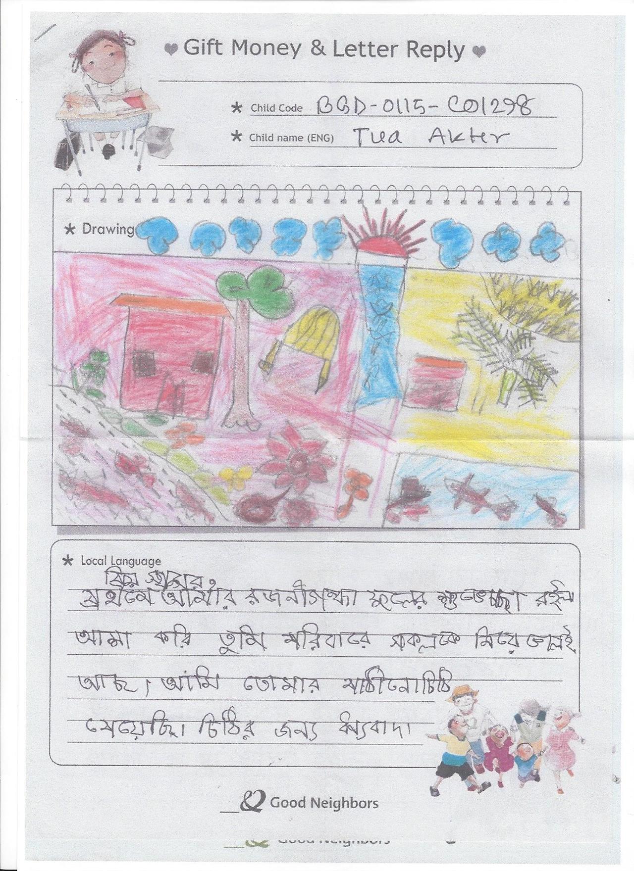 당연히 내가 쓴 편지에 대한 답장을 받기란 더욱 오래 걸리게 마련. 편지는 한글이나 영어로 작성한다. 한글이든 영어든 다시 방글라데시어로 번역을 해야 하고 비행기에 태운 편지가 방글라데시 작은 마을을 찾아 투아 악터의 손에 들어가기까지 산 넘고 물을 건너게 된다.
