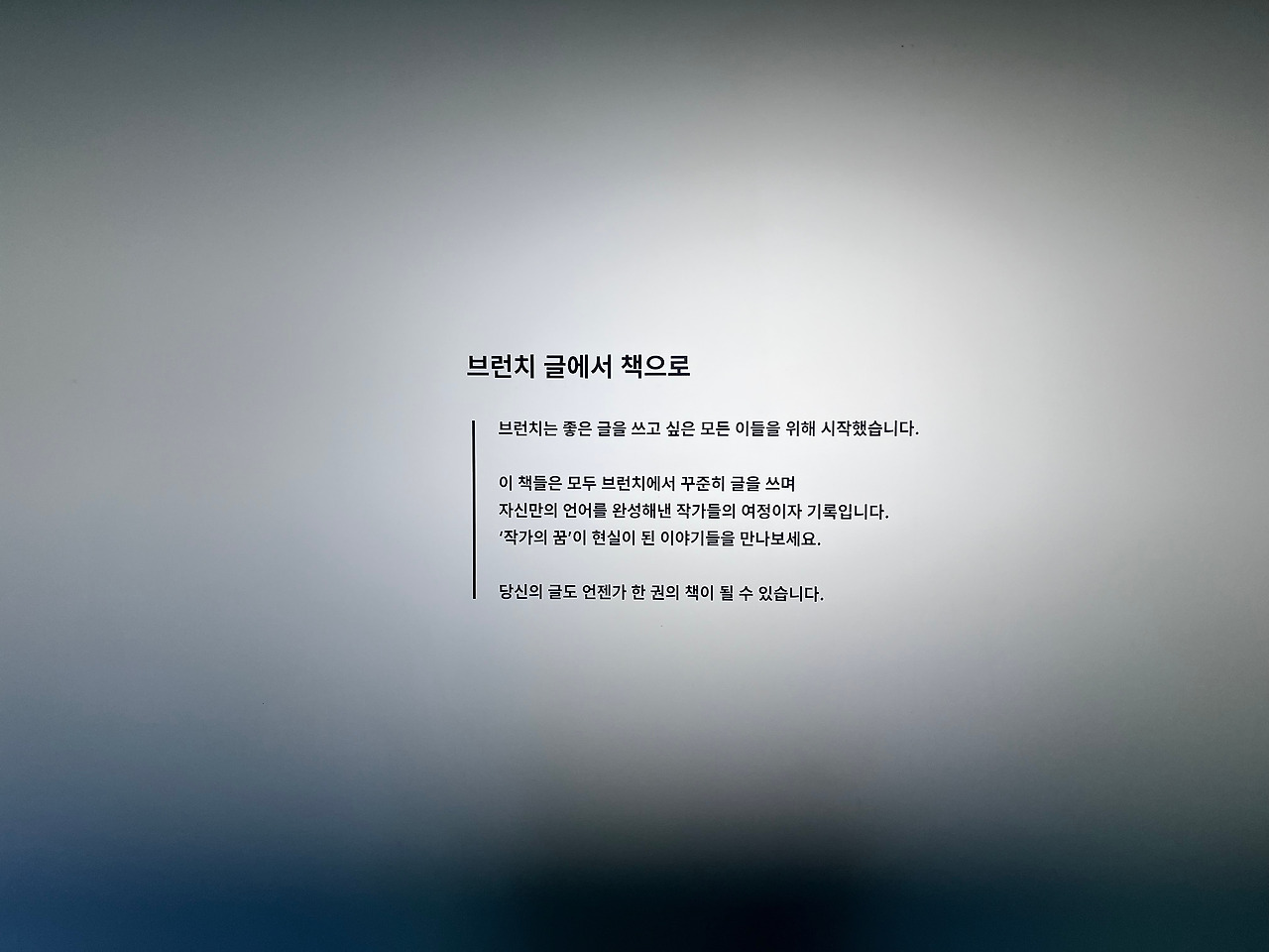 브런치 북 프로젝트에는 수많은 작가들의 이름이 새겨져 있습니다. 전에 알던 작가도 있고 새롭게 알게 된 작가도 있습니다. 모두가 같은 브런치 작가입니다. 그들의 열정과 도전 끝에 새겨진 결과물은 결국 저렇게 책이 되었고 세상에 퍼져나갔죠. 누군가는 '요즘 같은 시대에 누가 책을 읽느냐'라고 말할지 모르지만 세상은 여전히 누군가의 문장으로 채워지고 있는 중입니다. 어떤 이들은 디지털 화면의 무색무취한 콘텐츠보다 종이 위에 번지는 잉크 냄새와 활자의 온기를 더 깊이 느끼고 있죠. 그게 서점을 찾는 이유고 책을 읽게 만드는 힘 아닐까요.
