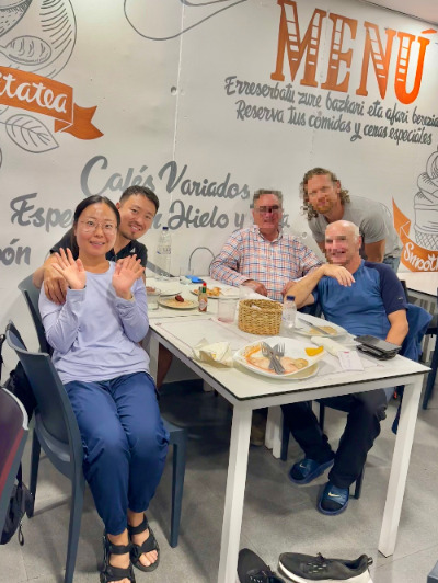바르에는 식사가 될만한 음식을 팔지 않는다 하여 근처 식당으로 장소를 옮겼다. 하필 그곳도 브레이크 타임이었다. 주변에는 다른 식당이나 장을 볼 수 있는 마트가 없었다. 할 수 없이 한 시간가량을 앉아서 기다려야 했다. 어제저녁 식사 때 역시나 같은 테이블에 앉았던 룩셈부르크 출신 폴(Paul)과 티몬(Timon)도 우리를 발견하고 합석했다. 둘 역시 음식점을 찾아 헤매던 중이었다고 한다. 서로의 안부를 물으며 반갑게 재회했다. 폴이 얼마 전 정년 퇴임을 하기 전 까지는 티몬과 직장 동료였다고 한다. 티몬은 폴의 아들 뻘인데도 폴에게 끊임없이 장난을 쳐댔다. 폴은 티몬의 장난이 익숙한지 묵묵히 받아 주는데 둘의 모습이 너무 재밌었다. 덕분에 화기애애한 분위기가 조성되었고 더 빠르게 가까워질 수 있었다. 가벼운 농담부터 각국이 겪고 있는 심각한 사회 문제까지 다양한 대화 주제들을 넘나 들며 즐거운 시간을 보냈다.