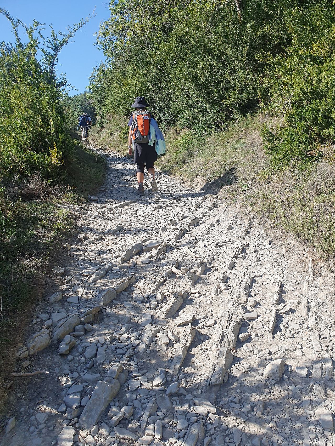 아내가 마지막 약 5km의 내리막 구간을 몹시 힘들어했다. 바닥에 사선으로 솟아오른 돌의 독특한 지형이 문제였다. 안 그래도 근력이 부족한 아내는 평소에도 발을 자주 헛디뎠고 그로 인해 다친 적도 몇 번 있었다. 오늘은 거기에 더해 백팩까지 메고 있어 위험이 가중되었다. 아내는 부상을 당하지 않기 위해 한 걸음 한 걸음 조심스레 내디뎠다. 내가 할 수 있는 거라고는 뒤에서 천천히 따라가는 것 밖에 없었다. 고군분투하는 모습을 보고 있자니 안타까운 마음이 들면서도 내심 아내가 극복해 내길 바랐다. 남들보다 느리긴 했지만 무사히 어려운 길을 통과했다. 고맙고 자랑스러웠다.