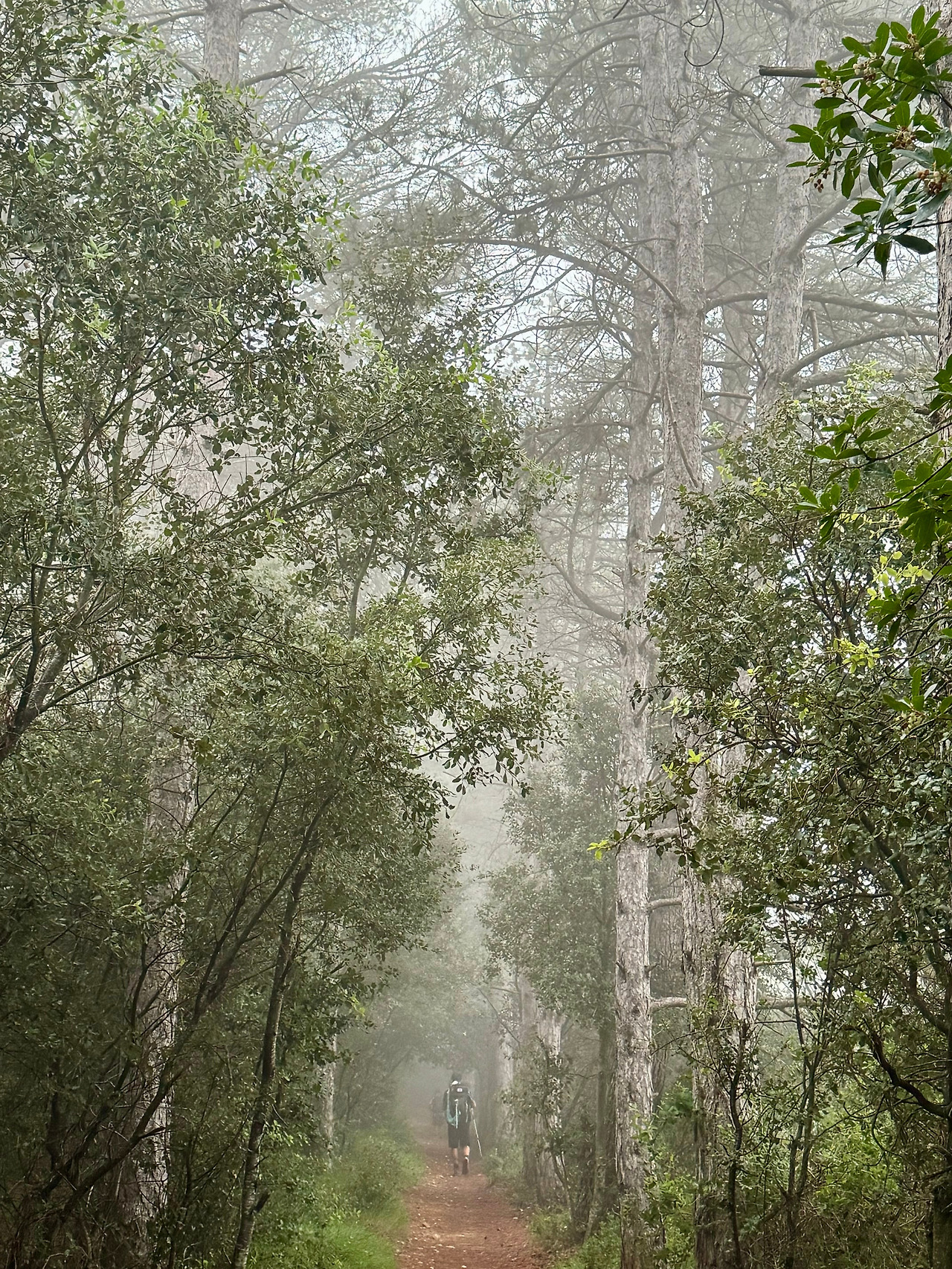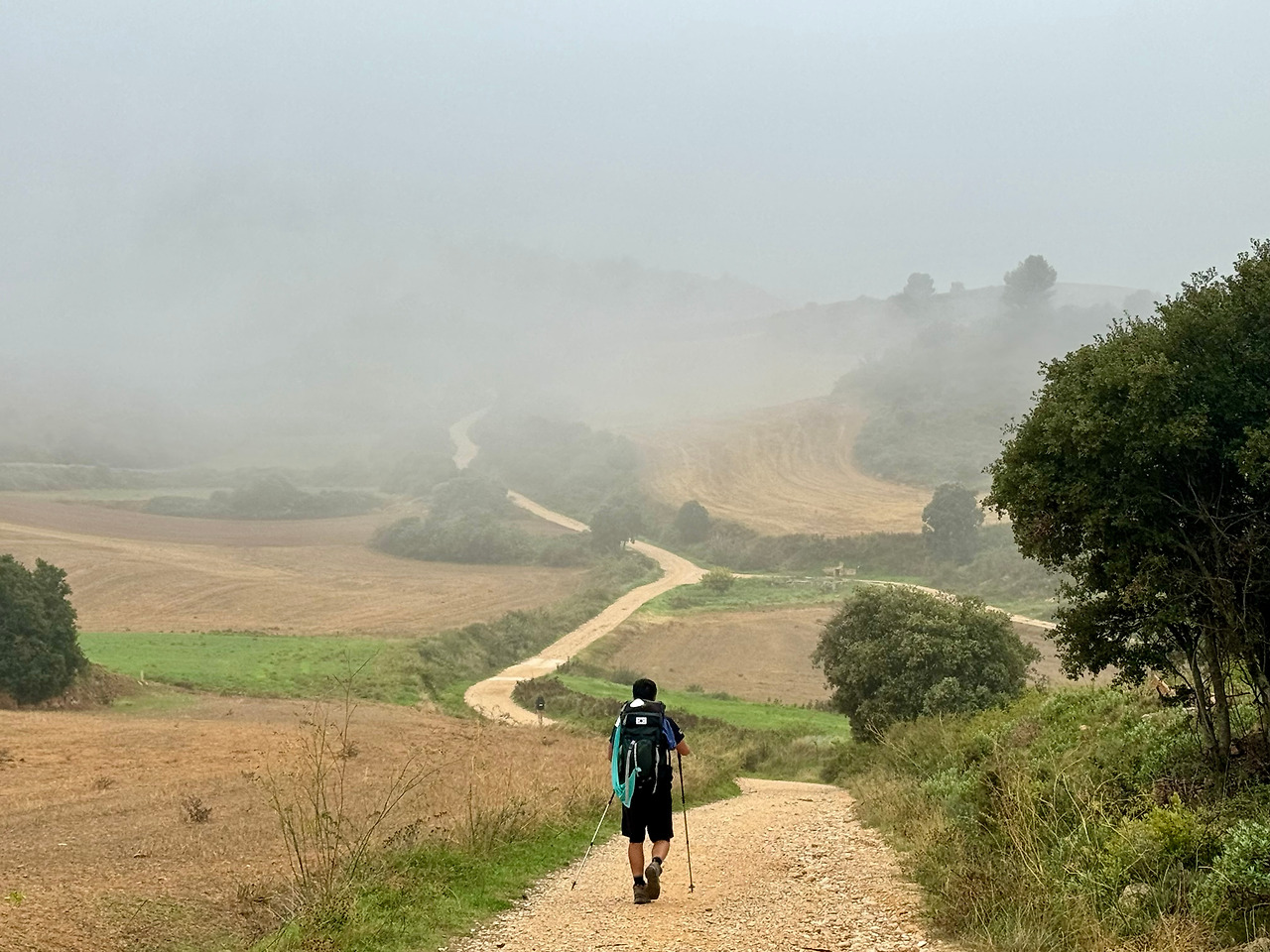 조마조마한 와중에 앞서 걸어가던 사람이 잠시 쉬어 가기 위해 가방을 내려놓는 것이 보였다. 가까이 다가갔다. 오는 길에 갈림길 표지판을 보았냐고 물어보니 그렇다고 한다. 자신은 이 길이 우회로인 것을 알고 일부러 진입했다고 한다. 길이 더 좋지 않은데도 이 길로 들어선 이유는 더 예쁘기 때문이라고 했다. 뾰로통한 표정으로 옆에서 듣고 있던 아내의 얼굴에 일순간 화색이 돌았다. 이름 모를 순례자 덕분에 위기에서 벗어날 수 있었다. 길은 듣던 대로 아름다웠다. 걷기 어려운 산길 구간이 생각보다 짧아 아내도 손쉽게 통과할 수 있었다. 안개가 짙게 깔려있어 운치가 느껴졌다.
