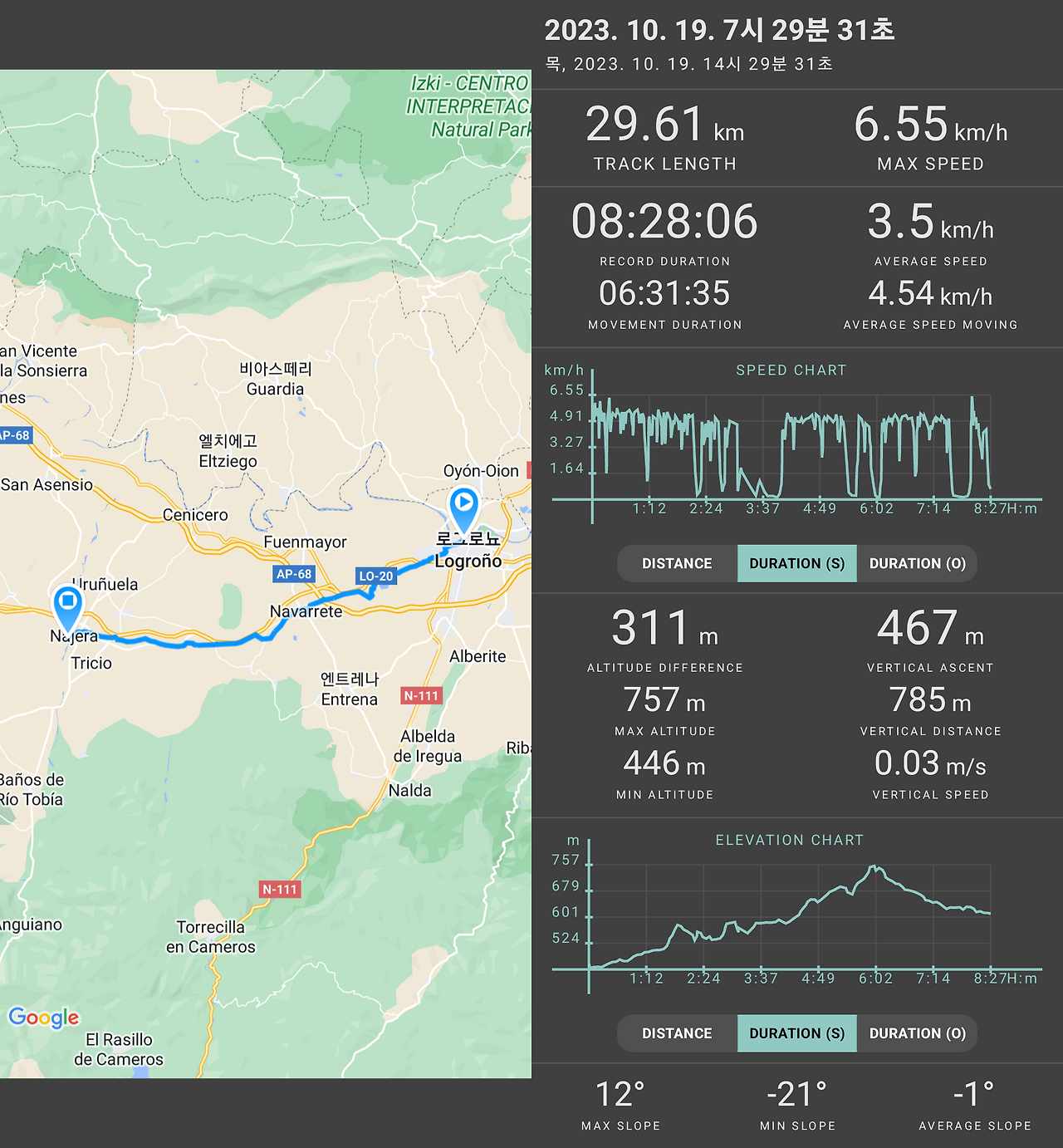 29.61km / 8시간 28분 / 날씨 흐림, 비 약간