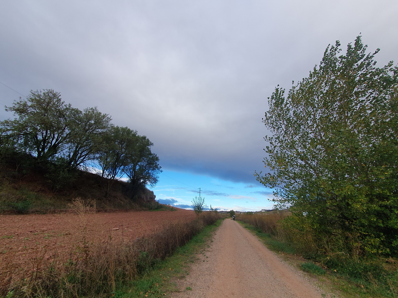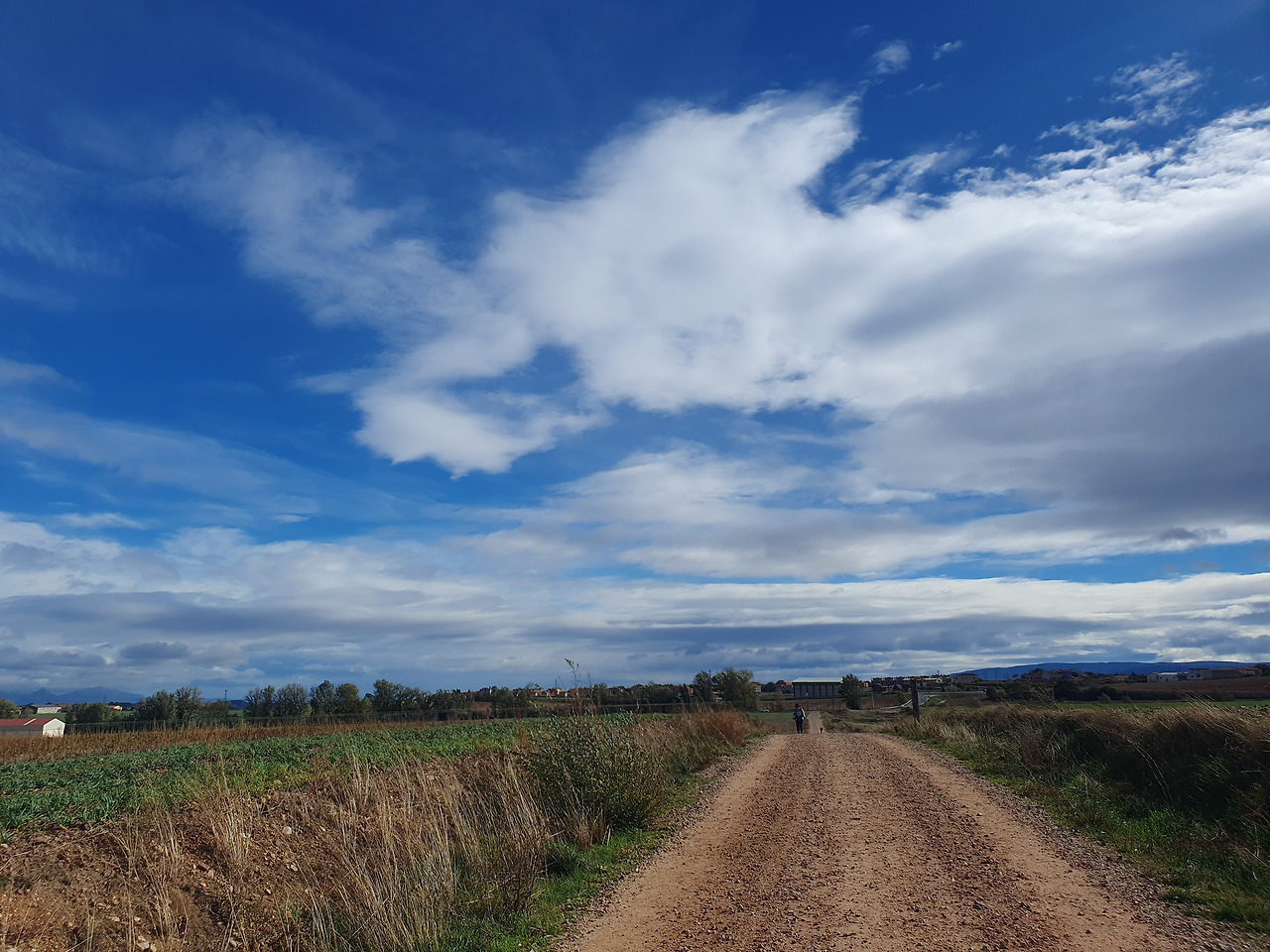 바람과 맞서 싸우며 걷다가 Cirueña(시루에냐)라는 마을 입구에 위치한 음식점에서 잠시 쉬었다. 따듯한 차와 간단한 음식을 주문해 땅콩만으로 달래기 부족한 허기를 채웠다. 오늘의 도착지인 Santo Domingo de la Calzada(산또 도밍고 데 라 깔사다)까지는 7km 조금 안되게 남았었다. 2시간이면 충분한 거리였다. 그런데 그 2시간을 걷는 게 너무나도 버겁게 느껴졌다. 바람이 점차 거세져 몸을 앞으로 기울여야 할 정도였다. 음식점을 나와서 30분쯤 되었을 때는 도저히 끝까지 못 가겠다는 생각이 들었다. 다시 돌아가서 시루에냐에서 오늘의 일정을 끝내고 싶었다. 내가 이 정도면 아내는 얼마나 힘들까 하는 생각이 들었다. 아내의 솔직한 심정을 파악해 보기 위해 5분의 간격을 두고 세 차례 같은 질문을 던졌다. 시루에냐에서 쉬고 가는 것이 어떻겠냐고. 아내가 조금이라도 동의하는 듯한 뉘앙스를 풍기면 바로 돌아가려 했다. 의외로 아내는 두 번째까지 단칼에 거절하더니 세 번째 질문에는 그만 좀 물어보란다. 힘없으니까 말 시키지 말라며 도리어 나를 타박하면서 앞장섰다. 목표를 달성하고야 말겠다는 결연한 의지가 느껴졌다. 체력과 근력이 나보다 약한 아내가 확고한 모습을 보이자 나도 오기가 생겼다. 그래, 바람이 이기나 내가 이기나 한 번 해보자라는 각오를 다지며 아내 뒤를 따랐다.