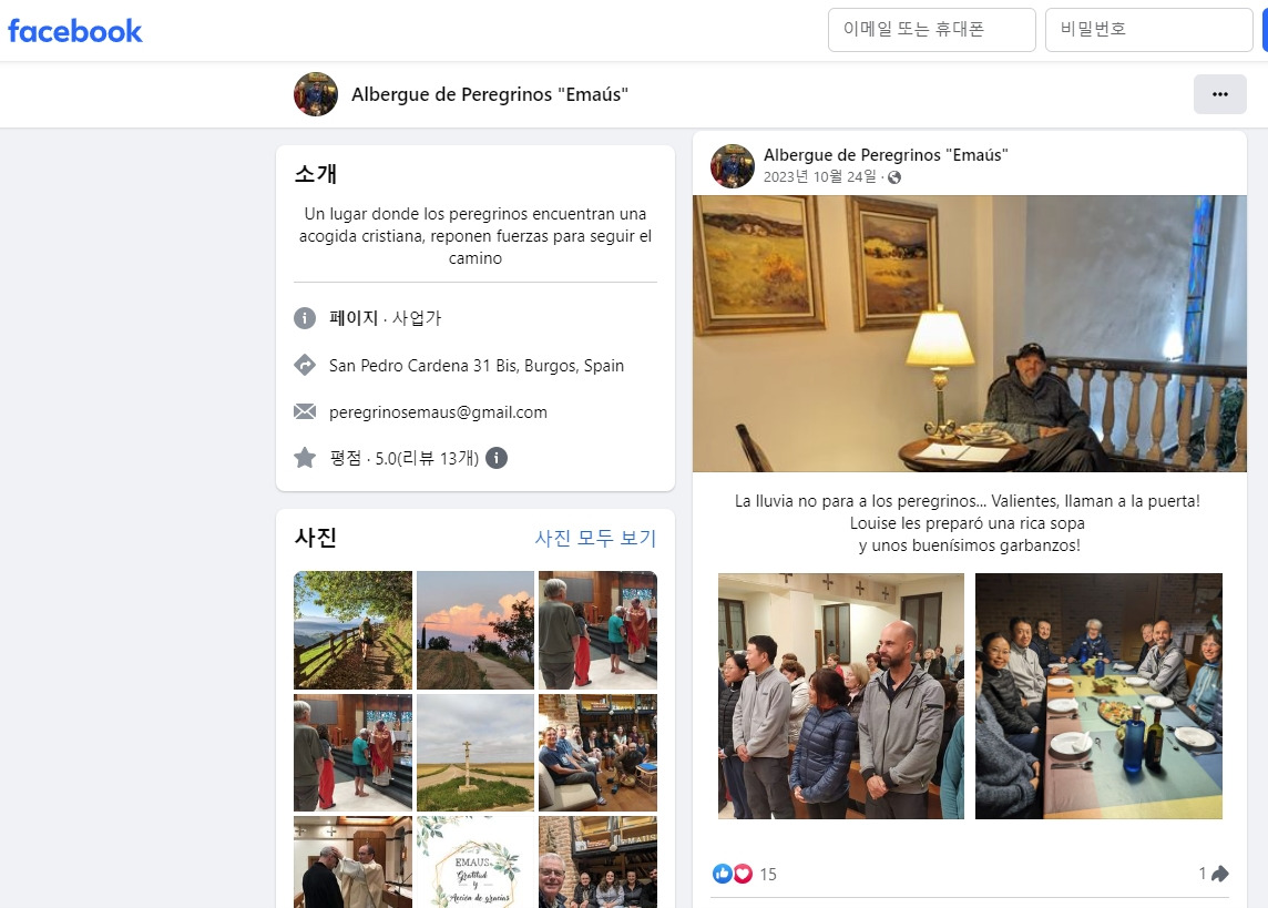 알베르게에서 운영하는 페이스북 계정에 게시된 그날 저녁 순레자들의 모습