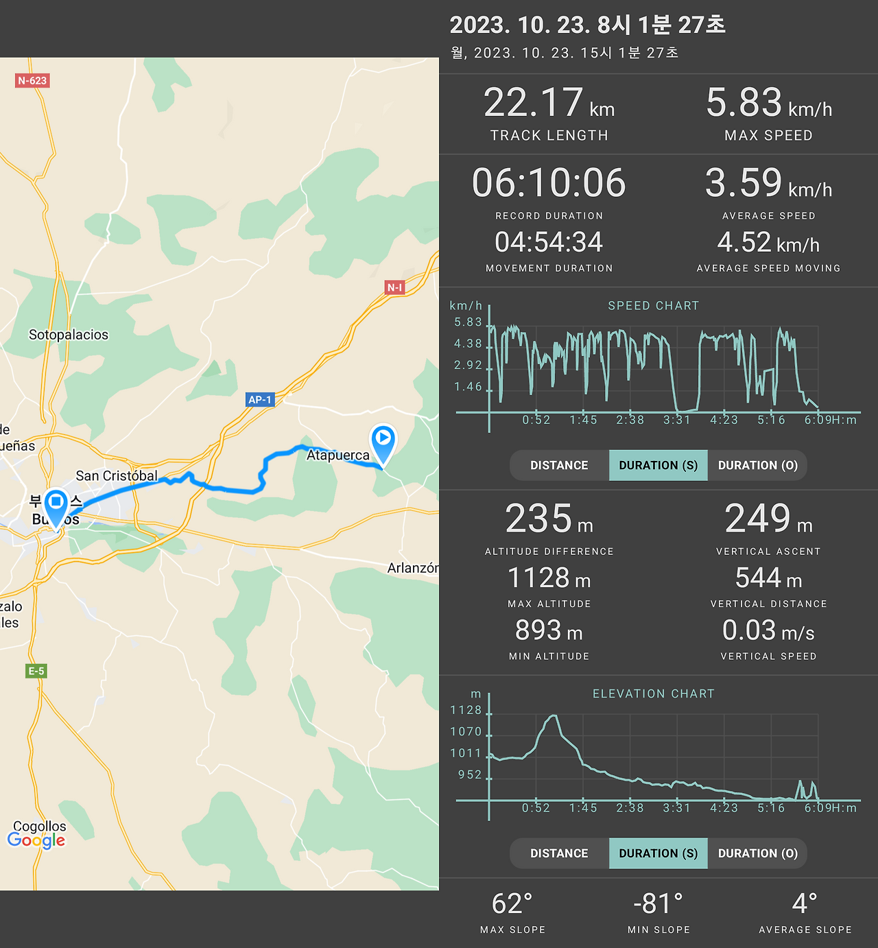 22.17km / 6시간 10분 / 흐림