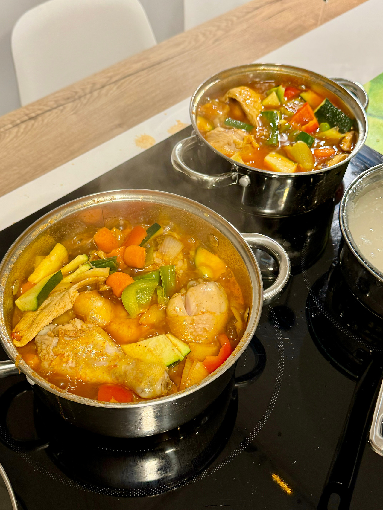 미리 예약한 에어 비앤비 숙소에 짐을 풀고 장을 보러 갔다. 상점들이 대부분 닫은 탓에 삼겹살을 구할 수 없어 목살로 대신했다. 다양한 한식 재료들도 구매했다. 메인 셰프를 담당한 아내가 잡채를 만드는 동안 나는 올리브 오일, 소금, 후추에 목살을 재워두었다. 요리가 완성될 때쯤 미리 가열해 놓은 프라이팬에 고기를 올려 굽기 시작했다. 두께가 얇고 비계가 적어 한국에서 먹던 것에 비하면 부족했지만 상추에 싸 먹으니 절로 콧소리가 흘러나오면서 미간이 찌푸려졌다. 잡채는 재료가 부족하여 완벽하지 않았음에도 제일 먼저 접시가 비워졌다. 지구 반대편에서 잡채를 먹을 수 있을 거라고 누구도 상상하지 못했기에 더 인기가 많았다. 며칠 굶은 사람들처럼 폭풍 흡입하며 첫 번째 코스를 마쳤다. 두 번째 메뉴는 닭볶음탕이었다. 원래는 찜닭을 만들 생각이었으나 아내가 남아있던 고추장을 이용해 중간에 변신시켰다. 닭볶음탕과 찜닭 사이 그 어딘가에 해당하는 음식이 완성되어 걱정이었다. 다행히 재료들이 신선하고 품질도 좋았기에 다들 게눈 감추듯 했다. 닭도 어찌나 크고 육질이 부드러운지 가슴살이 전혀 퍽퍽하지 않았다. 1차로 먹은 잡채가 결코 적은 양이 아니었음에도 마지막 건더기 하나까지 말끔히 해치웠다. 아직 무언가 허전했다. 남은 닭볶음탕 국물로 라면을 끓여 거기에 계란과 밥을 넣은 라죽으로 대미를 장식했다. 바닥까지 싹싹 긁어먹었다. 곁들여 마신 소주는 요리들과 어우러져 맛을 북돋아주었다. 특히 청량하고 시원한 맥주에 소주의 묵직함이 더해진 소맥은 균형이 완벽했다.