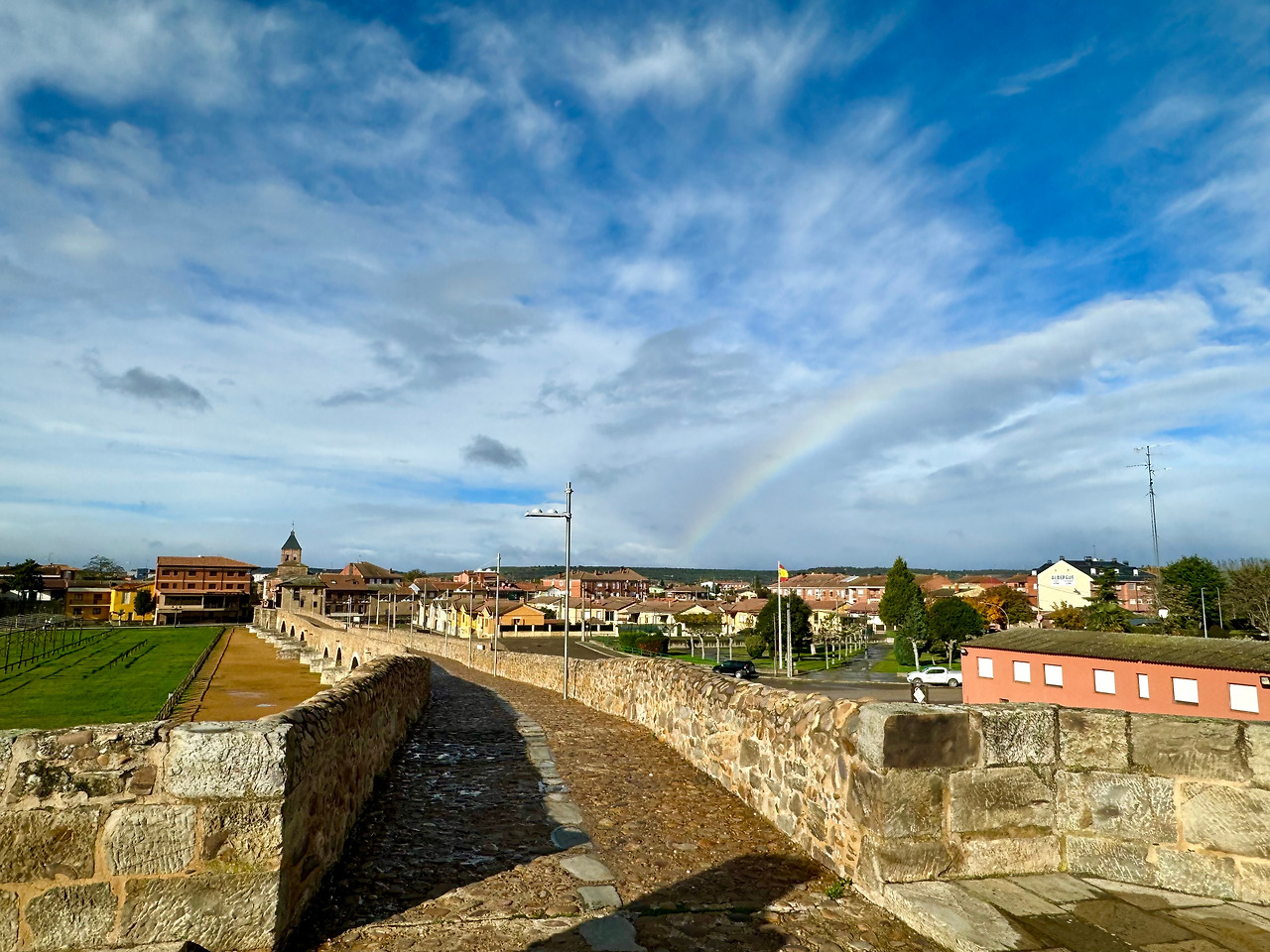 분명 떠오르는 태양을 보며 숙소를 나섰는데 10분도 되지 않아 빗줄기가 떨어지고 강한 역풍이 불기 시작했다. 하늘을 올려다보니 구름이 군데군데 끼긴 했지만 여전히 맑은 편이었다. 비바람과 햇빛은 일반적으로 공존하지 않는데 이곳에서는 어느새 일상적인 날씨가 되어버렸다. 이런 날이면 어김없이 무지개가 뜬다. 오늘도 그러했다. 순례길에서 처음 무지개를 본 날이 생각났다. 화려한 모습에 가던 길을 멈추고 한참을 감상했었다. 비 때문에 가라앉았던 기분도 덕분에 회복됐었다. 이제는 무지개가 보이면 궂은 날씨가 얼마나 우릴 괴롭힐지 두려움과 걱정부터 앞선다. 상황과 경험에 따라 같은 현상도 다르게 받아들여진다는 인생의 진리가 다시 한번 떠올랐다.