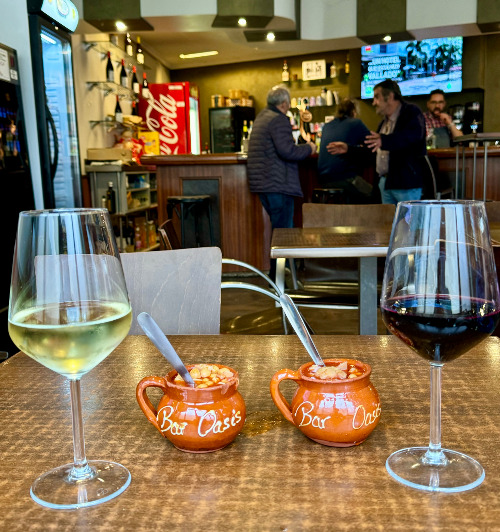 신난 마음에 문을 열었다. 널찍한 공간에 사람들이 제법 들어차 있었다. 자세히 보니 거의 현지인들이었다. 단번에 맛집임을 알아차릴 수 있었다. 카운터로 가서 또르띠야와 와인을 한 잔씩 시켰다. 자리에 앉아 곰곰이 생각해 보았다. 오전에 먹은 간식을 또 입에 대는 것이 순간 내키지 않았다. 아주 가끔 이유 없이 변덕을 부릴 때가 있는데 오늘이 딱 그랬다. 아내에게 속내를 털어냈다. 주문은 이미 했으니 음식을 담아가서 내일 아침으로 먹는 것이 어떠냐고 한다. 마침 점심을 먹고 나서 비어 있는 음식통이 있었다. 명쾌한 해결책이었다. 잠시 후 주인이 또르띠야와 와인 두 잔 그리고 정체불명의 요리가 담긴 작은 그릇을 내주었다. 주문하지 않은 음식이 나와 어안이 벙벙했다. 다른 손님이 주인을 부르는 탓에 궁금증을 해소할 틈도 없었다. 또르띠야에 곁가지로 함께 제공되는 것으로 유추하며 숟가락으로 휘저어보았다. 따뜻하게 데워진 도자기 그릇에는 병아리콩 수프가 담겨있었다. 한 입 먹어 보니 고추기름에서 나는 맵고 짭조름한 맛이 콩의 구수함과 잘 어울렸다. 정작 또르띠야는 입에 대지도 않았지만 덤으로 딸려 오는 음식에서 이미 주인의 정성과 인심이 느껴졌다. 낮인데도 사람들로 북적이는 이유가 있었다.