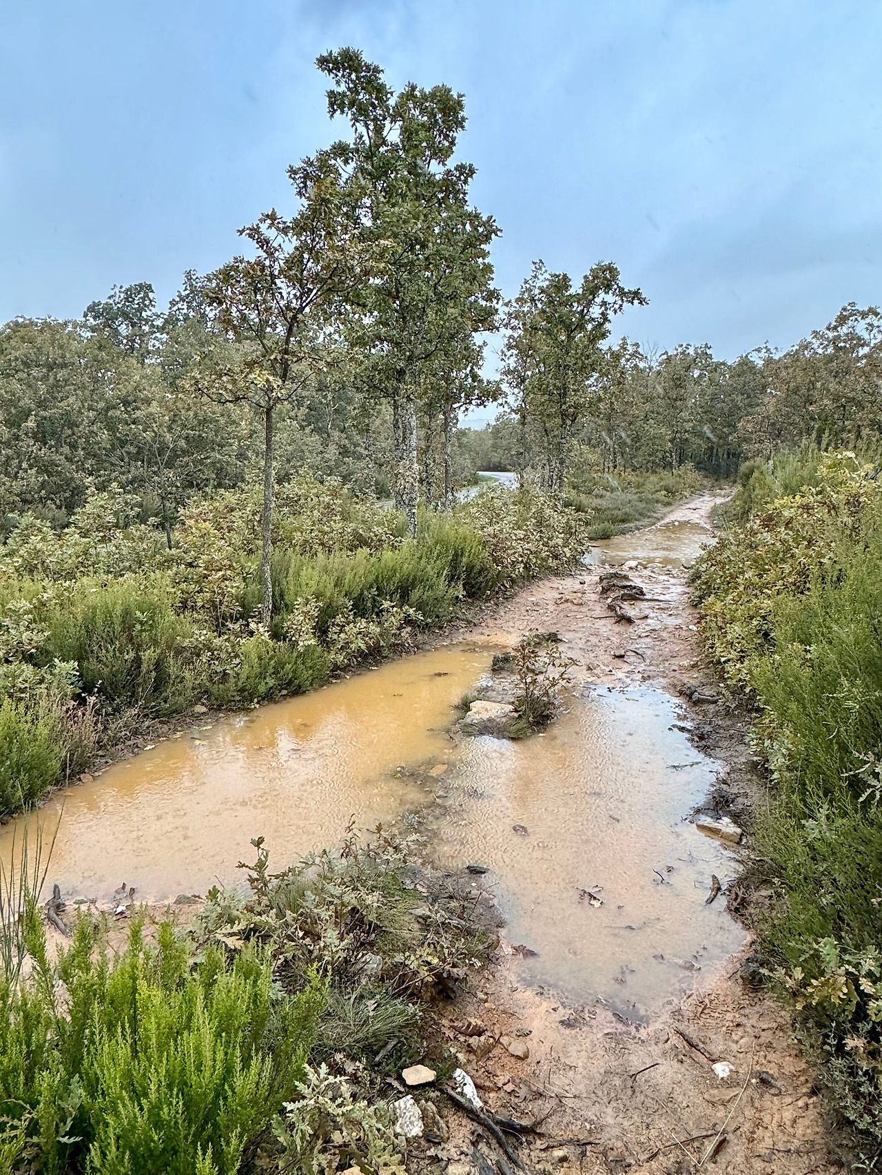 코스 중반 이후부터는 한참 동안 산길을 걸어야 했다. 산길 곳곳에는 물이 고여 있었다. 웅덩이를 만나면 신발이 덜 젖으면서 안전하게 통과할 수 있는 최적의 경로를 찾아야 한다. 거기서 끝이 아니다. 웅덩이를 지날 때 진흙에 미끄러지거나 발을 헛디뎌 물에 빠지지 않도록 한 발씩 조심해서 디뎌야 한다. 육체적, 정신적 체력 소모가 훨씬 심할 수밖에 없다. 그렇게 수 십 개의 웅덩이들을 지났다.