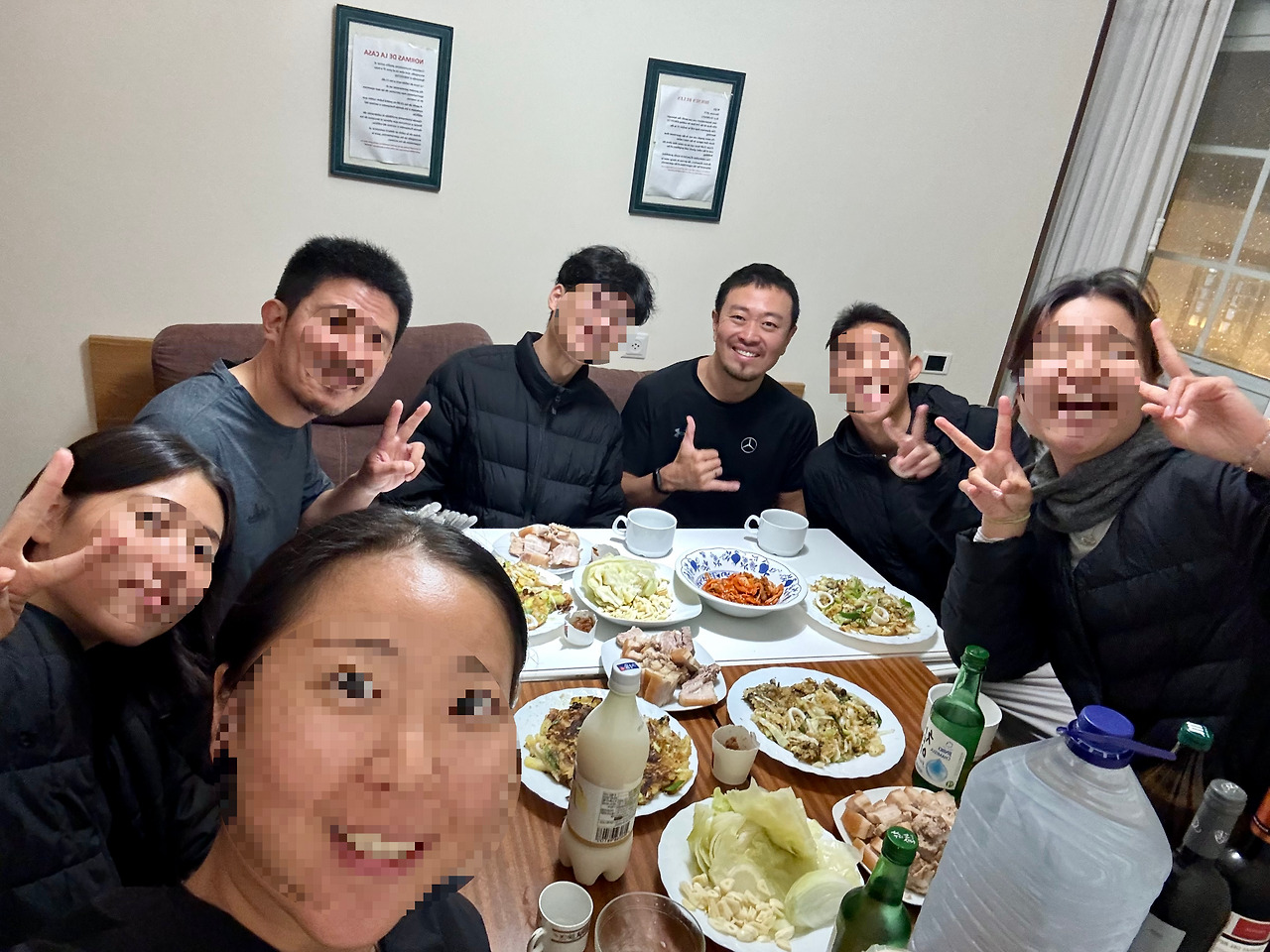 인원은 Leon 한식파티 멤버에서 인O님과 조님이 추가되어 총 7명이었다. 팀을 나누어 한쪽은 장을 봐와서 요리를 하고 다른 쪽은 빨랫감들을 모아 코인 세탁실에 다녀오기로 했다. 내가 속한 요리팀은 모두들 일사불란하게 움직이며 손발이 척척 맞았다. 부탁하지 않아도 저마다 할 일을 찾아 나선 덕에 음식 준비가 수월했다. 정신없이 재료 손질을 마치고 요리를 하다 보니 어느새 날이 어두워지고 있었다. 다행히 빨래를 담당한 팀이 숙소에 복귀하는 시점에 맞추어 상이 차려졌다.