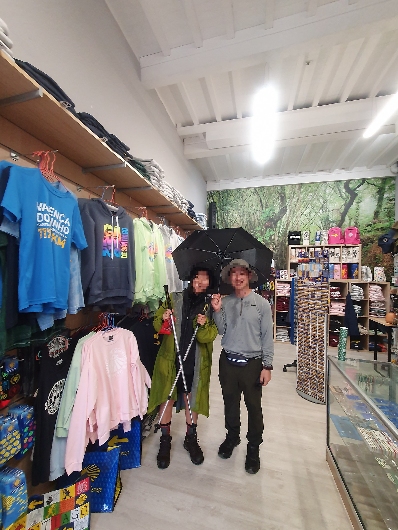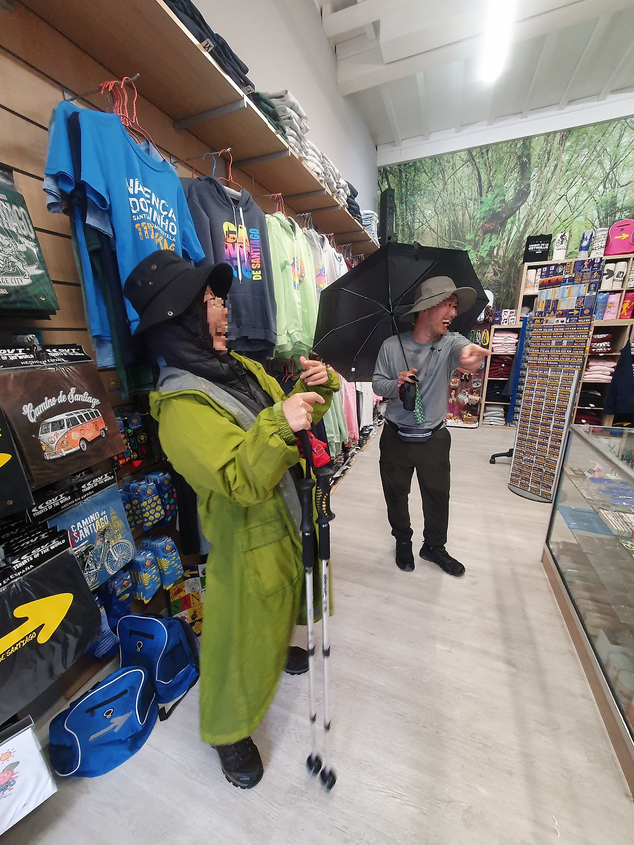 신부님도 자신의 우비와 스틱을 아내에게 물려주겠다고 했다. 다만 우비가 없으면 비를 그대로 맞을 수밖에 없기에 대안이 필요했다. 우산을 사기 위해 인근 상점으로 향했다. 아내가 우산을 함께 골라 주는 동안 나는 좁은 내부를 더 복잡하게 만들고 싶지 않아 입구 근처에서 기다리고 있었다. 아내와 신부님의 모습이 다정해 보였는지 계산대에 있던 상점 주인이 그만 실언을 하고 말았다.