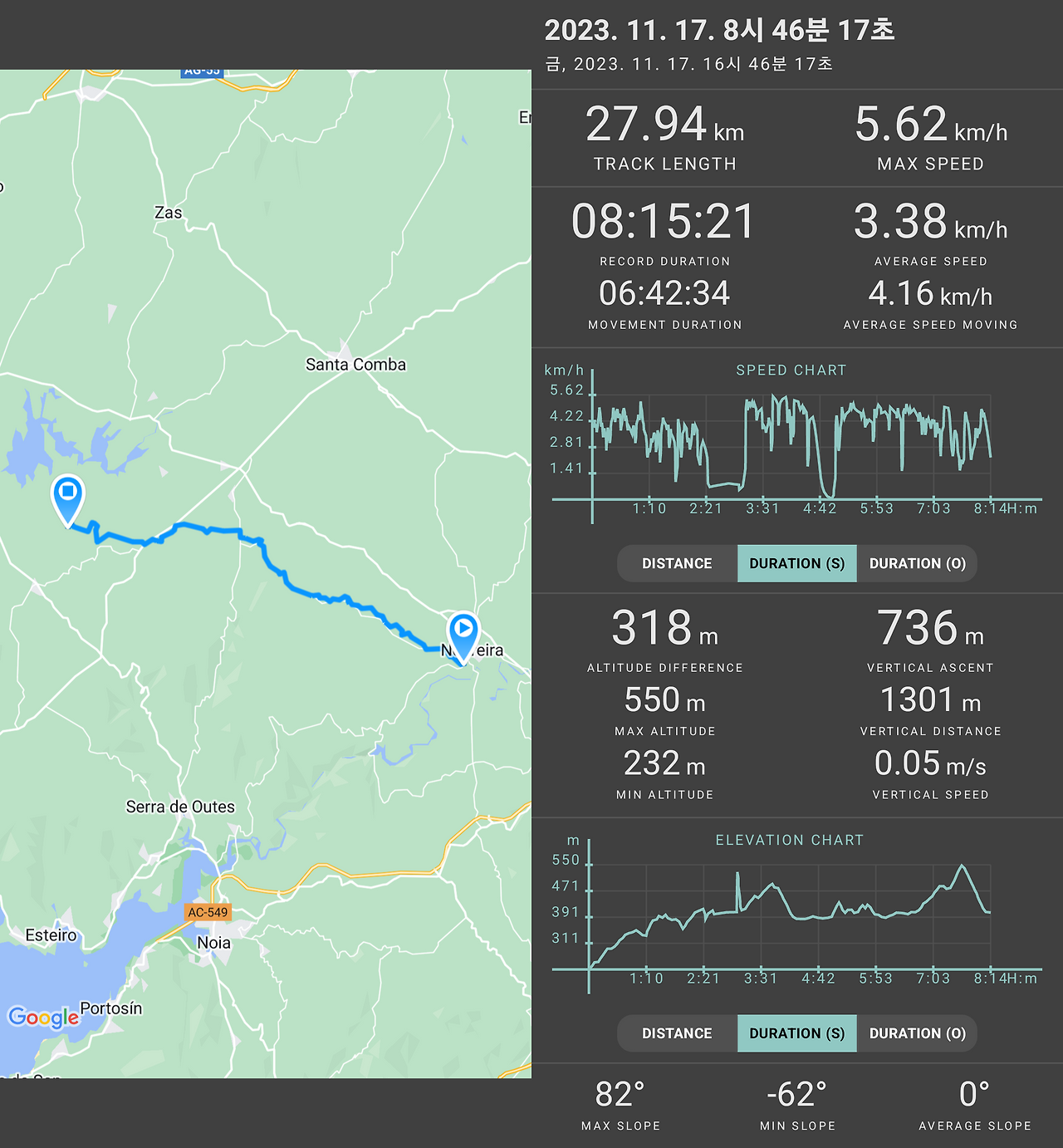 순례자용 어플에 따르면 오늘 약 32km를 가야 한다고 나왔다. 그럴 경우 내일의 코스는 23km 밖에 되질 않아 경로를 다소 단축시키기로 했다. 예정보다 빨리 일정을 마쳤음에도 8시간 넘게 걸은 탓에 제법 고되었다.