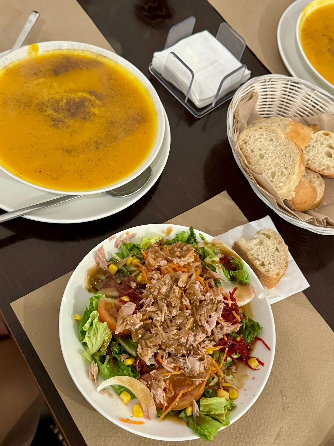 중간중간 여러 마을들을 지났지만 영업 중인 바르가 거의 없었다. 두 시간 반 만에 찾은 바르는 가파른 계단을 타야 했다. 다음 마을까지 가도 음식점이 있다는 보장이 없고 마침 휴식이 필요한 시점이었다. 결단을 내리고 계단을 올랐다. 우리의 도착에 맞춰 막 떠나는 다른 순례자에 의하면 이곳 음식이 기가 막히단다.