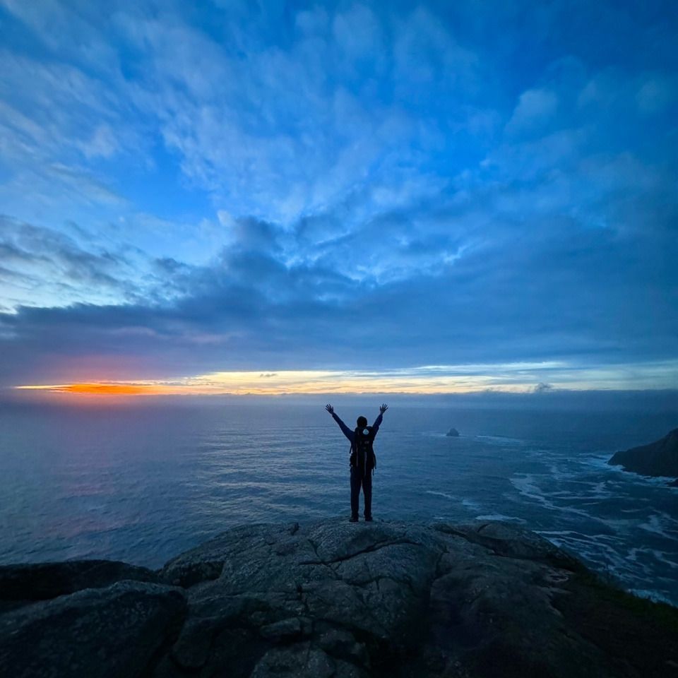 일몰 시간에 맞춰 Faro de Fisterra(파로 데 피스테라, 피스테라 등대)로 향했다. 등대 건물 뒤편 절벽가에 자리를 잡고 앉아 경치를 감상했다. 광활하게 펼쳐진 대서양 위에 작은 고깃배가 떠 있었다. 노을은 어디에서 마주하더라도 늘 신비하고 아름답다. 15년 전에도 순례자 동료들과 이곳에서 석양을 구경했었다. 친구들의 안부가 궁금하다.