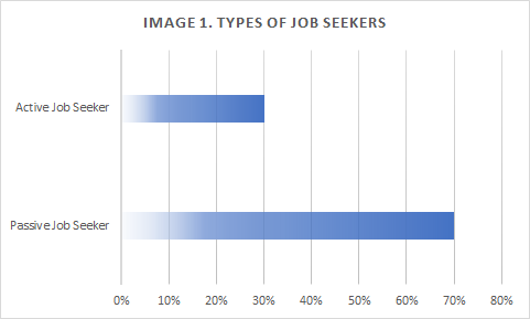 채용 마케팅을 소개하기에 앞서 현재의 구직시장 트렌드를 파악하는 게 우선인 것 같습니다. 세계 최대의 비즈니스 전문 소셜 미디어인 LinkedIn의 조사에 따르면, 설문 인원의 70%는 수동적인 구직활동을, 30%는 활동적으로 구직활동을 하고 있는 것을 확인할 수 있었습니다.