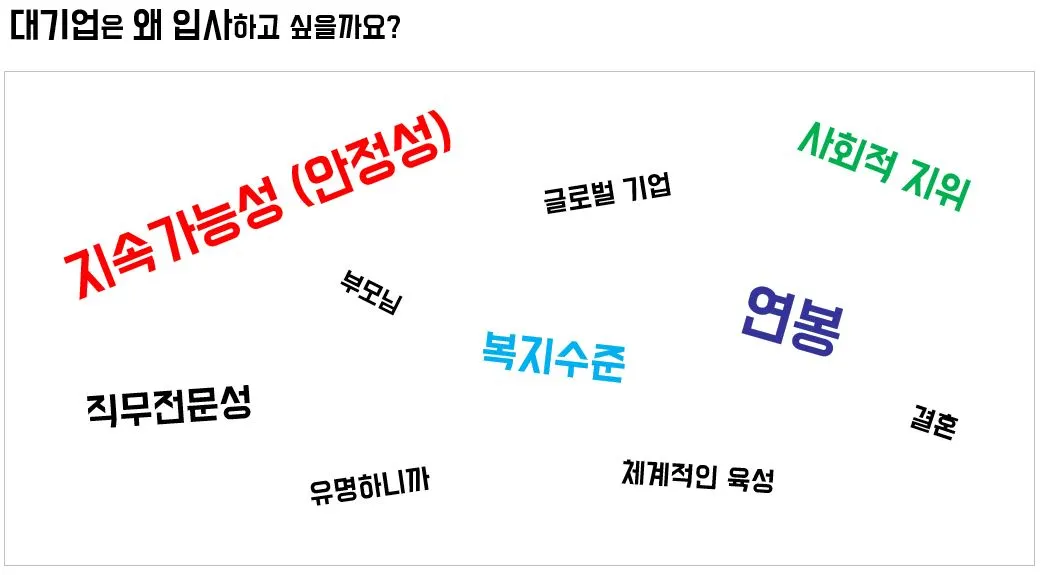 "여러분은 대기업에 왜 입사하고 싶으세요?"
